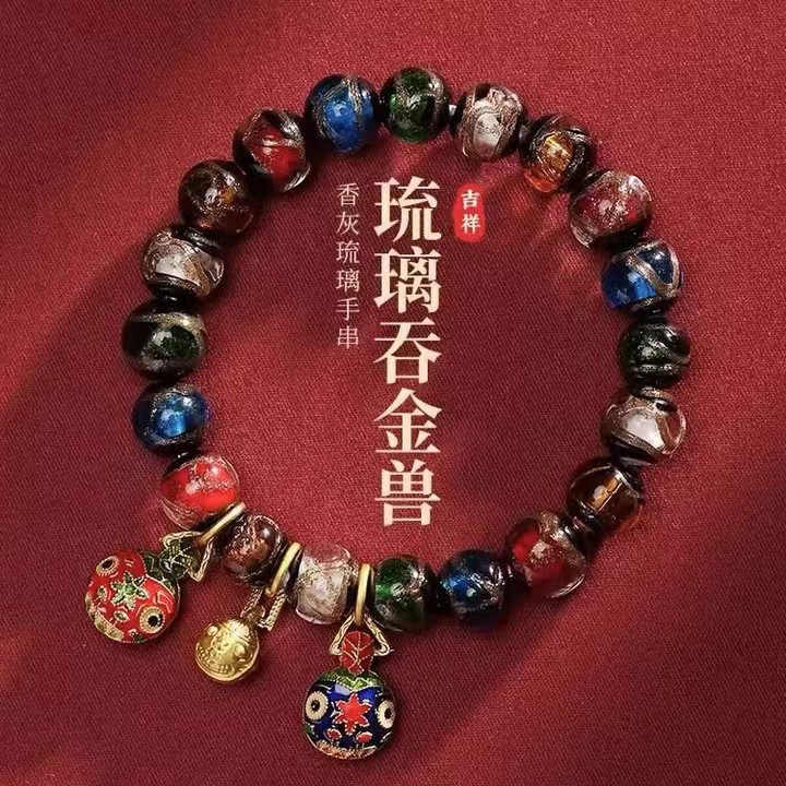 男性と女性のための香灰ガラスブレスレット、干支マスコット、金を飲み込む獣、幸運のブレスレット、新年のギフト卸売