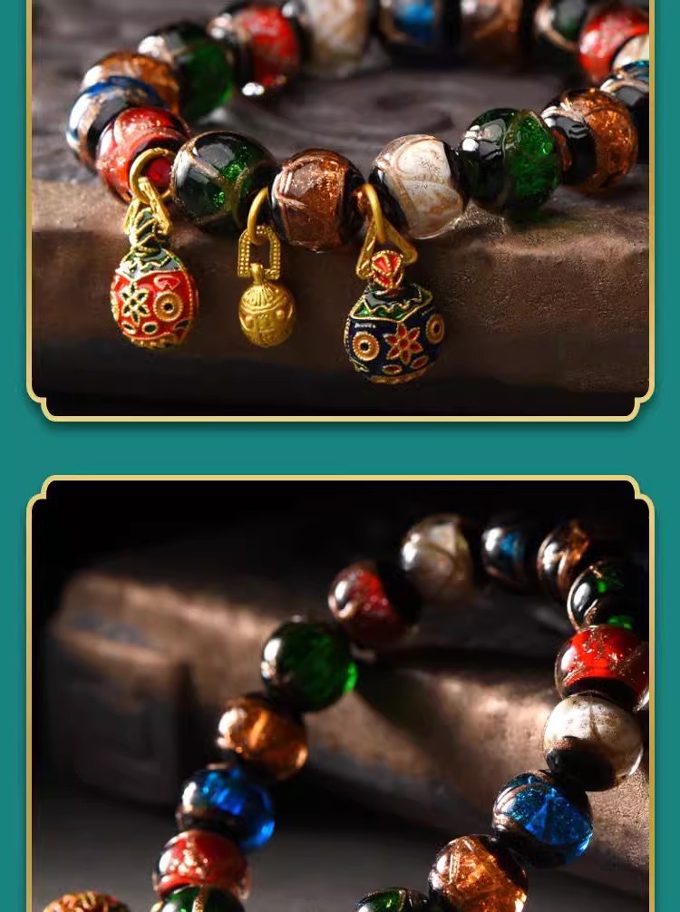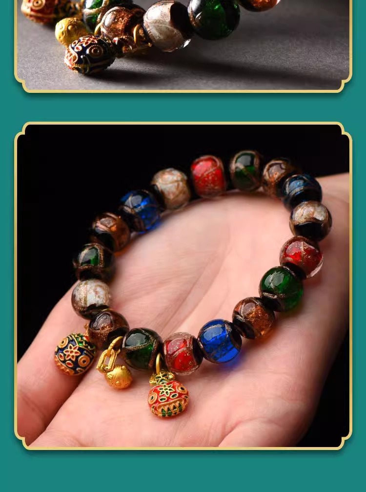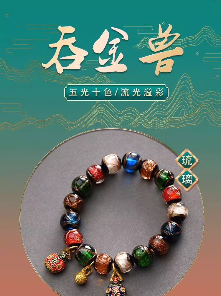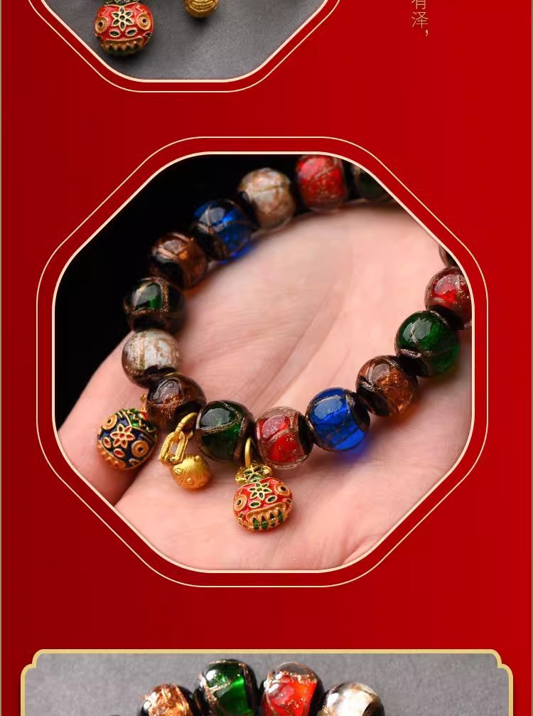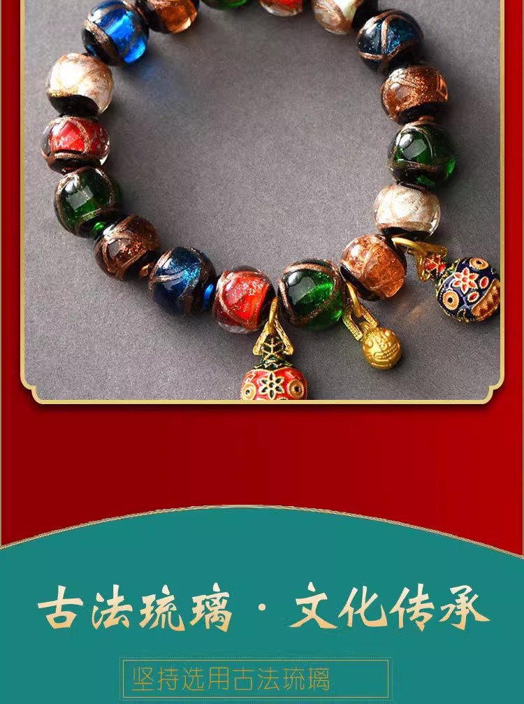 古法香灰瑠璃手串呑み金獣五色男女金DIYブレスレット一家三口エナメル玉