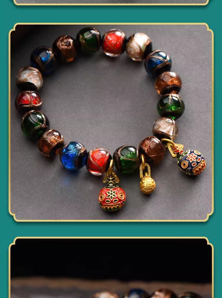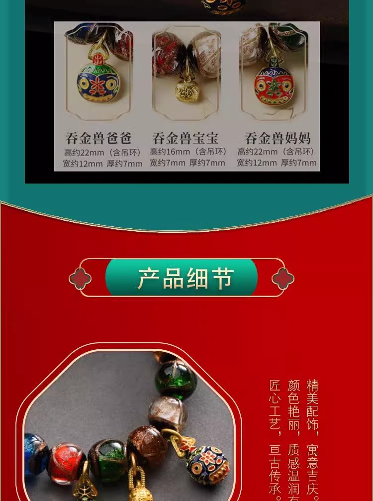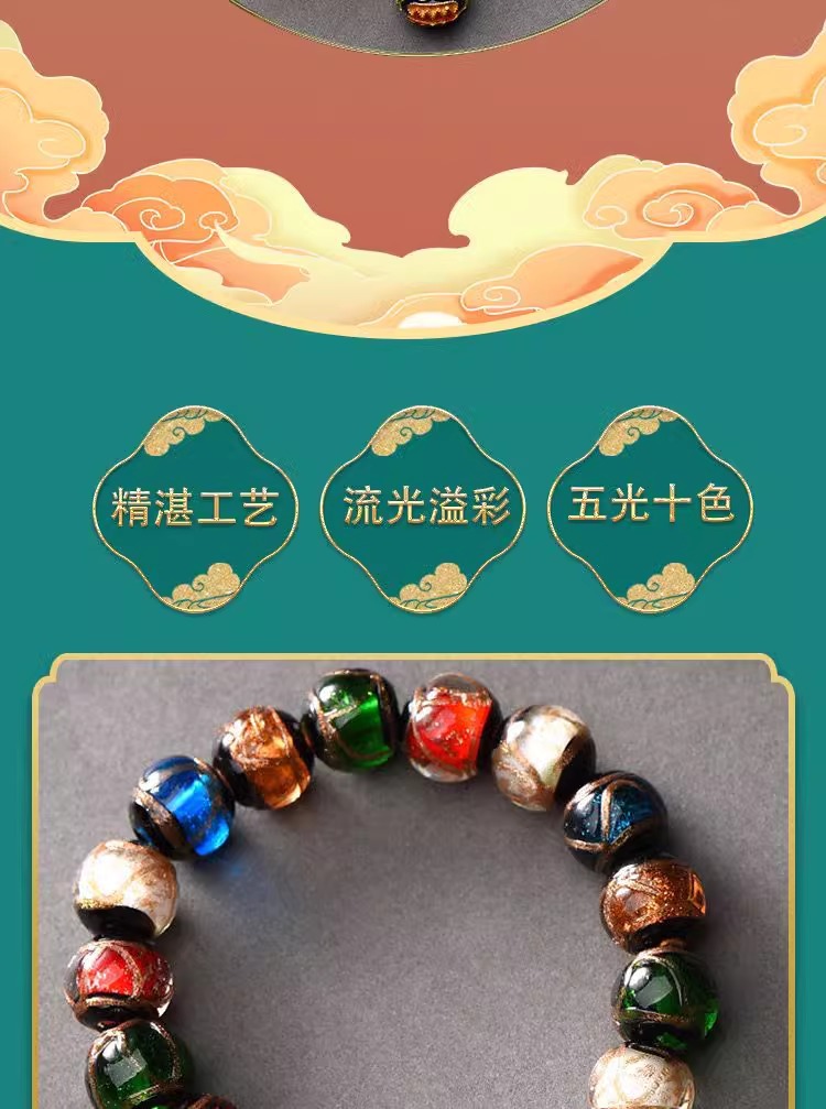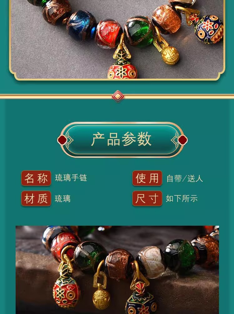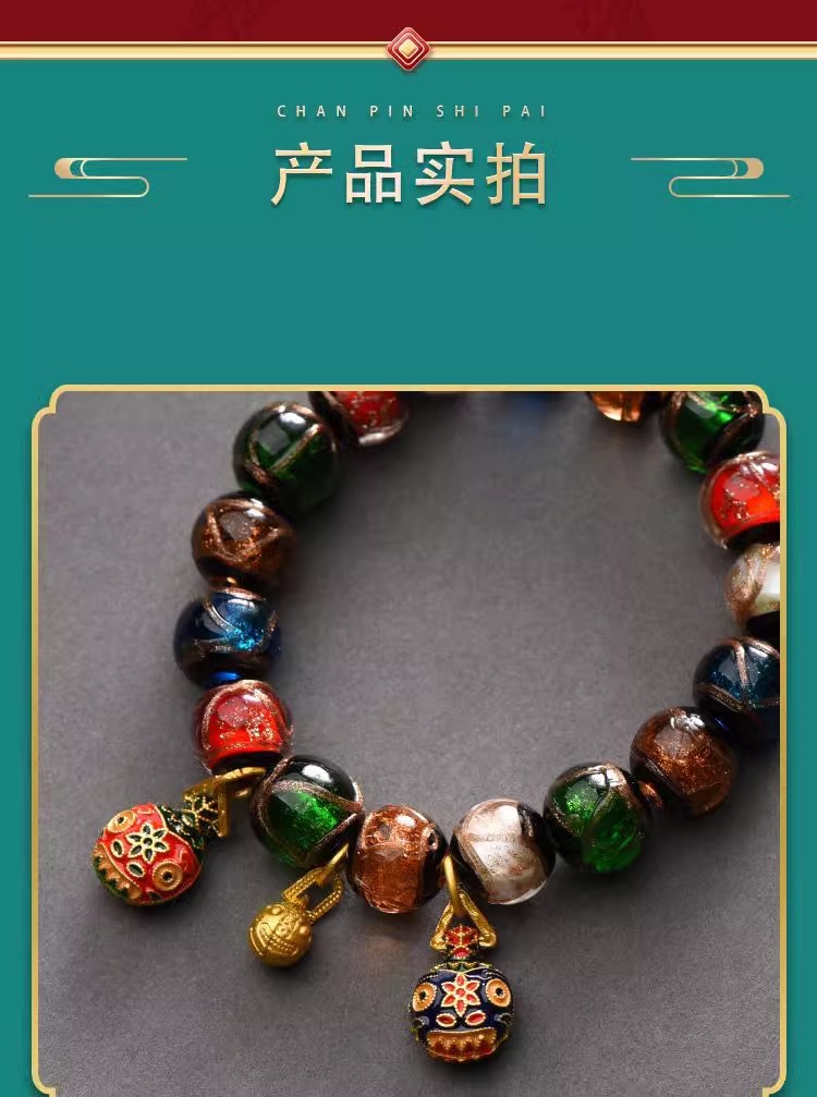 古法香灰瑠璃手串呑み金獣五色男女金DIYブレスレット一家三口エナメル玉