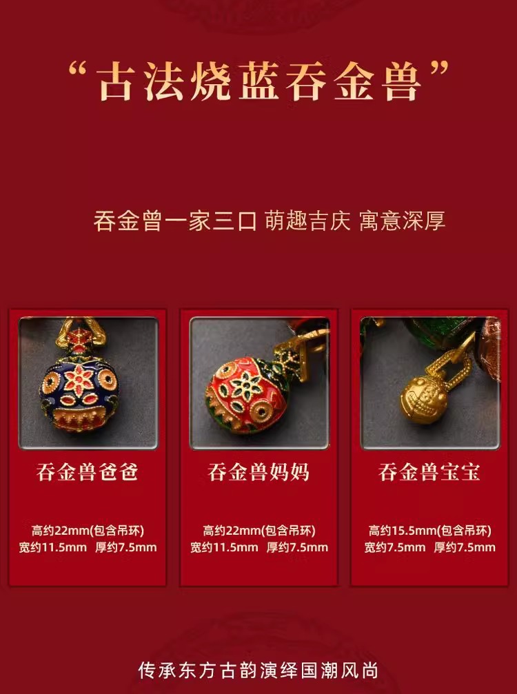雍香灰瑠璃は金獣の手を飲み込んで一家三口と観光地区の同じタイプの宮廷のブレスレットの手作りの多宝の民族風を連ねます。