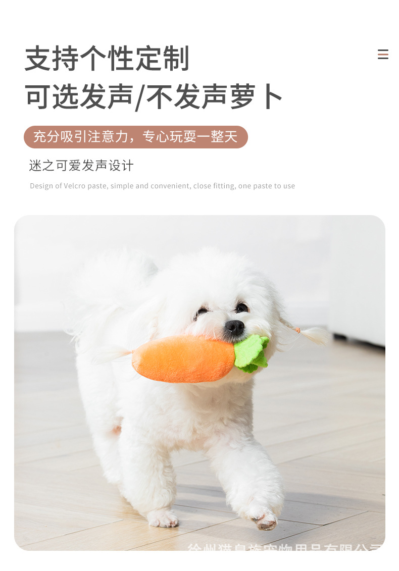 国境を越えたスポットペットのぬいぐるみ犬のおもちゃ大根を抜いて声をかじって、自分の食べ物を解凍してペットのおもちゃを嗅ぐ