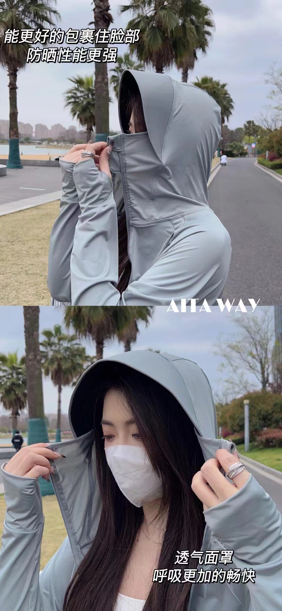 女性用日焼け止め服、夏用薄手UPF50+抗UV弾性スリムフィットファッショナブルで多用途な高弾性アイスシルク日焼け止め服