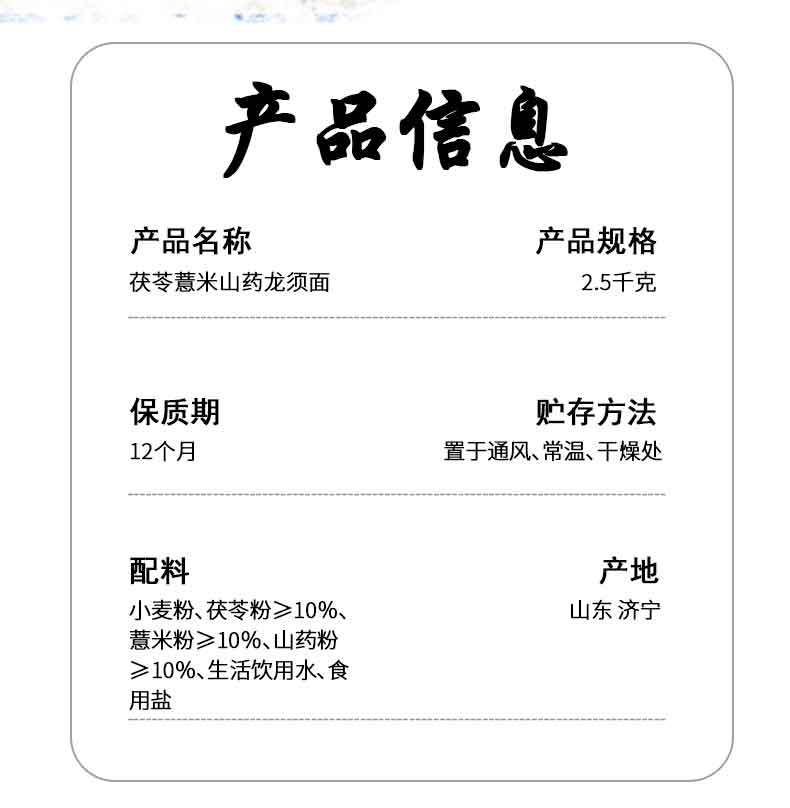 正宗茯苓薏米铁棍山药龙须面超细手工面条五斤早餐整箱挂面旗舰店