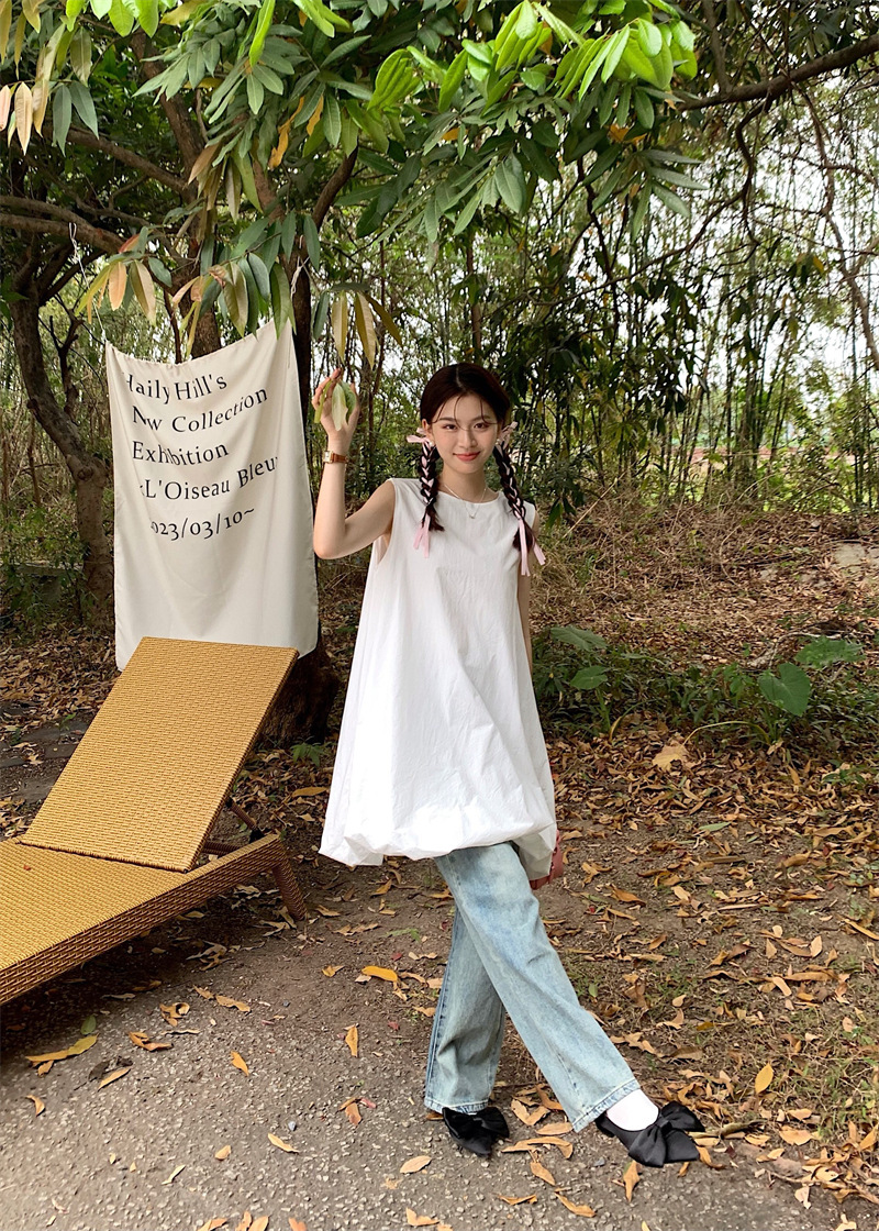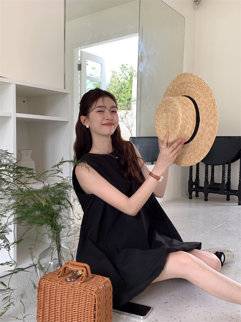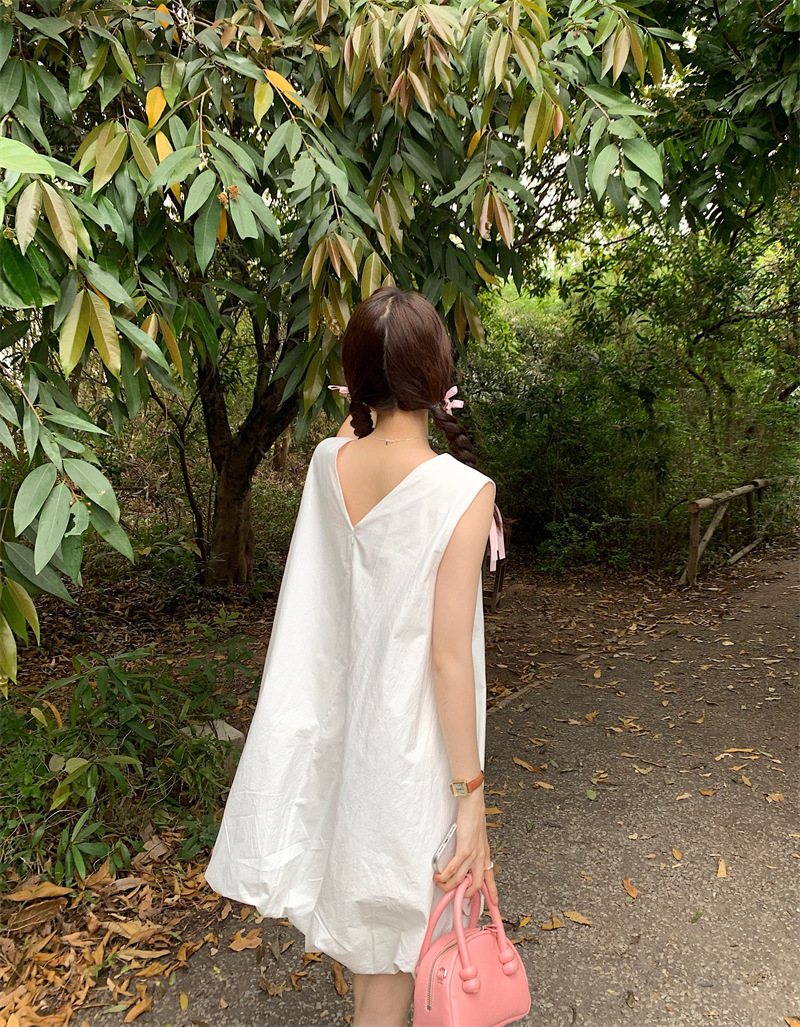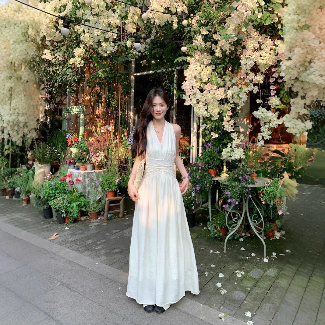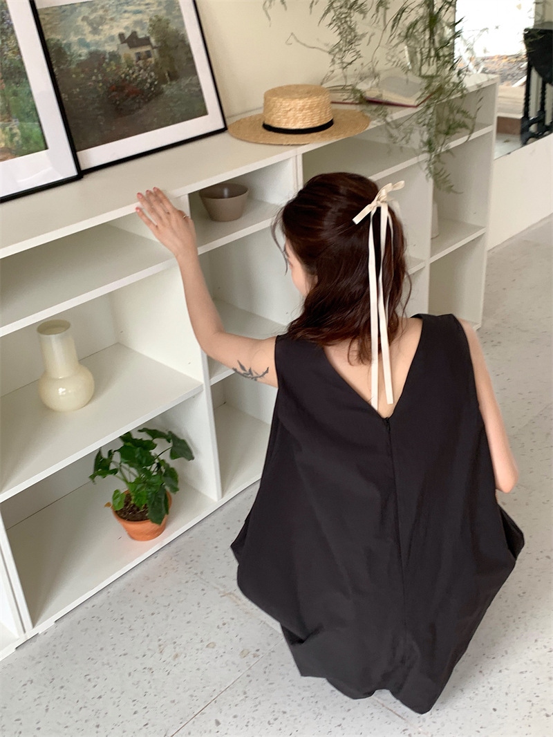 実拍フランス千金デザイン感ノースリーブワンピース女性夏2025新作ウエストvネックプルオーバーロングスカート