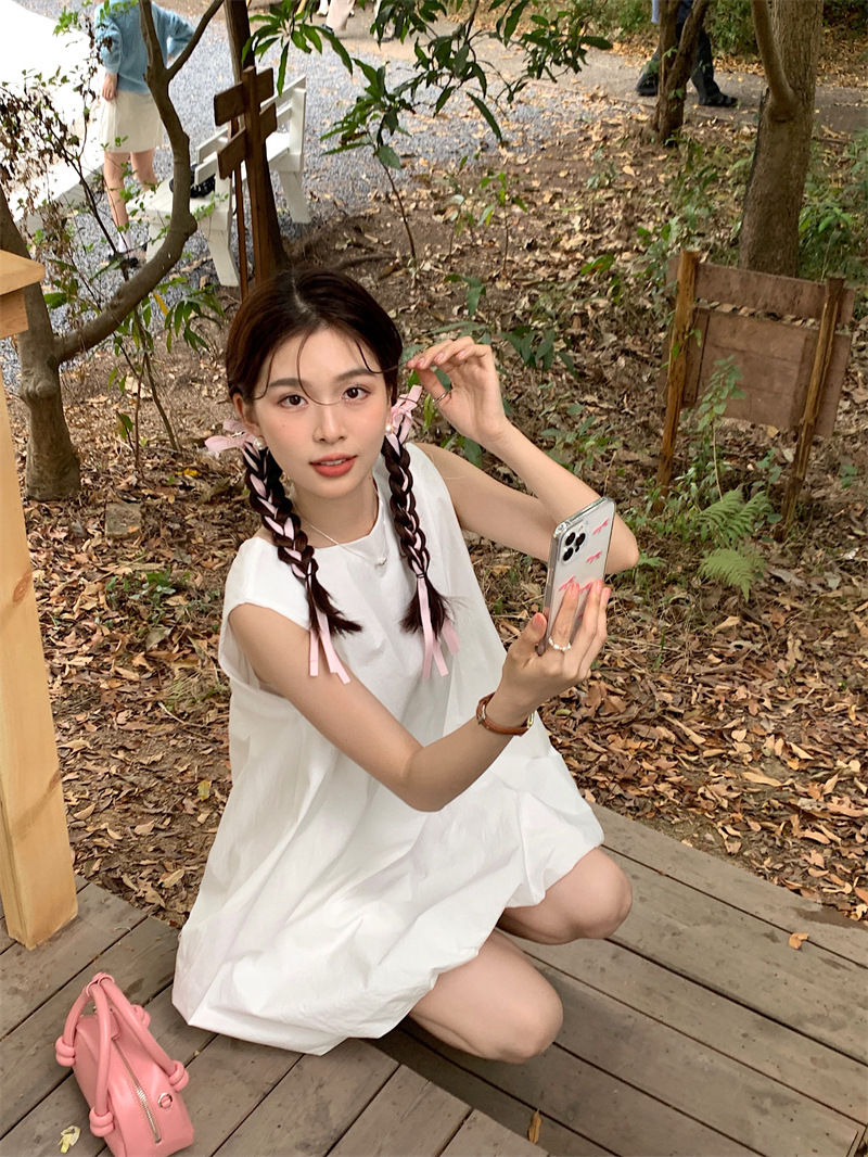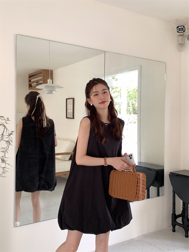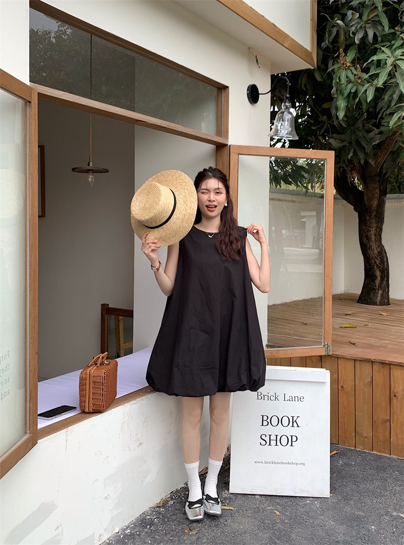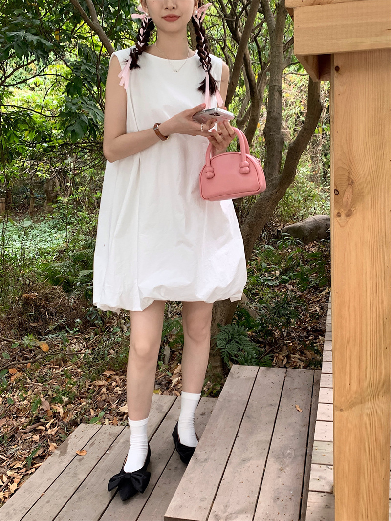 実物写真 2026年夏新作 ゆったりベビードールワンピース ミディアム丈 パフスカート Aラインワンピース ショートスカート レディース 63170