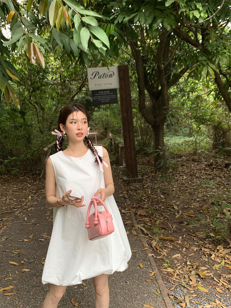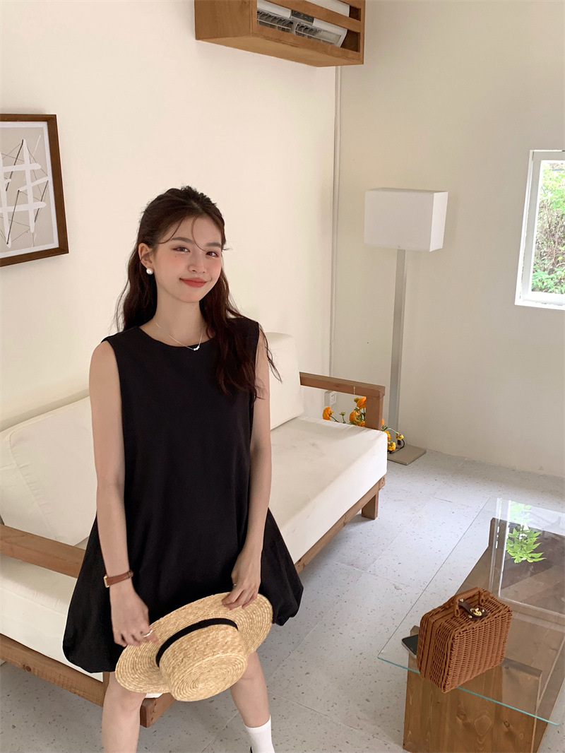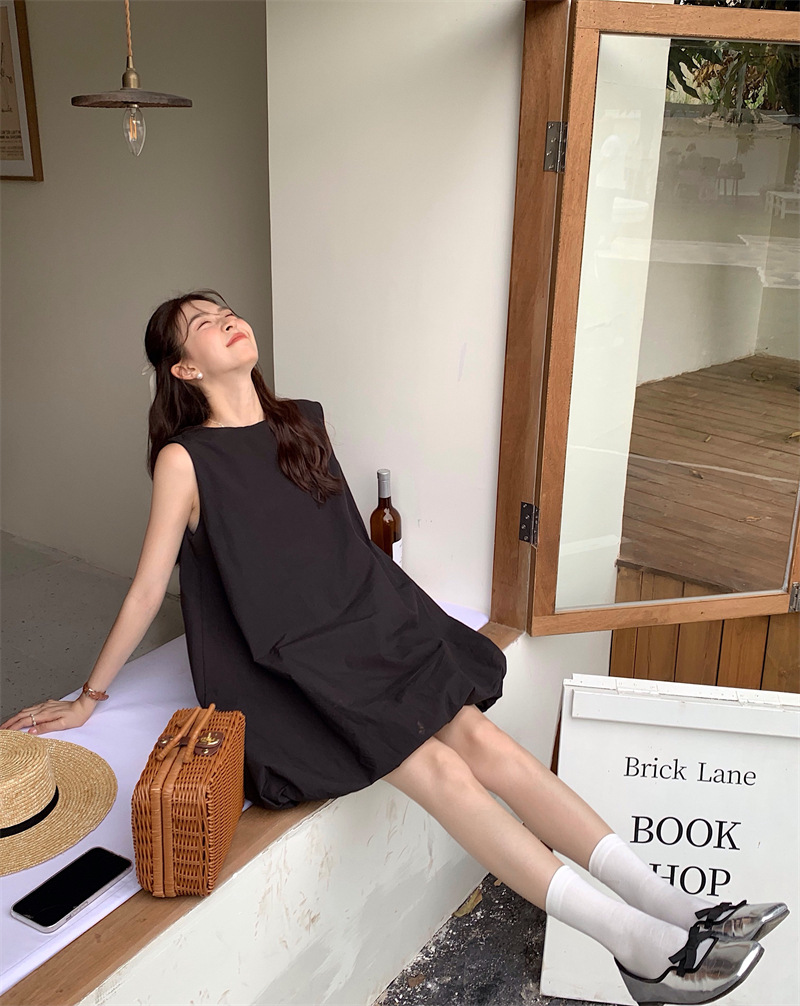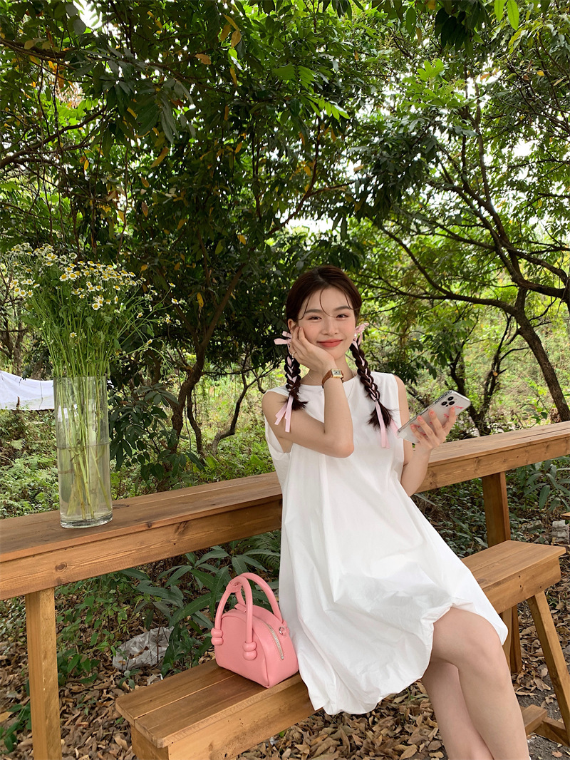 実物写真 2026年夏新作 ゆったりベビードールワンピース ミディアム丈 パフスカート Aラインワンピース ショートスカート レディース 63170
