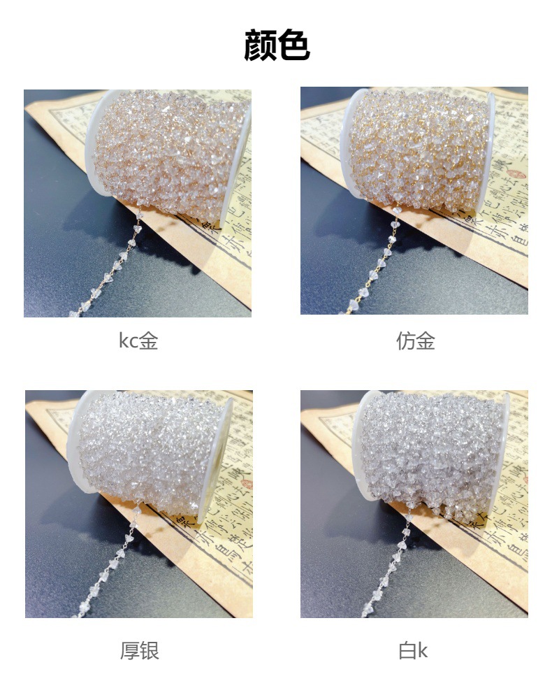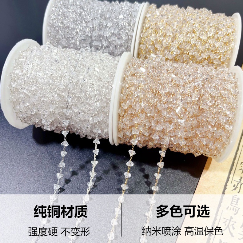 DIYアクセサリーチェーン4mm浅粉三角水晶チェーン高温保色手作り水晶銅チェーン古風ヘアアクセサリー