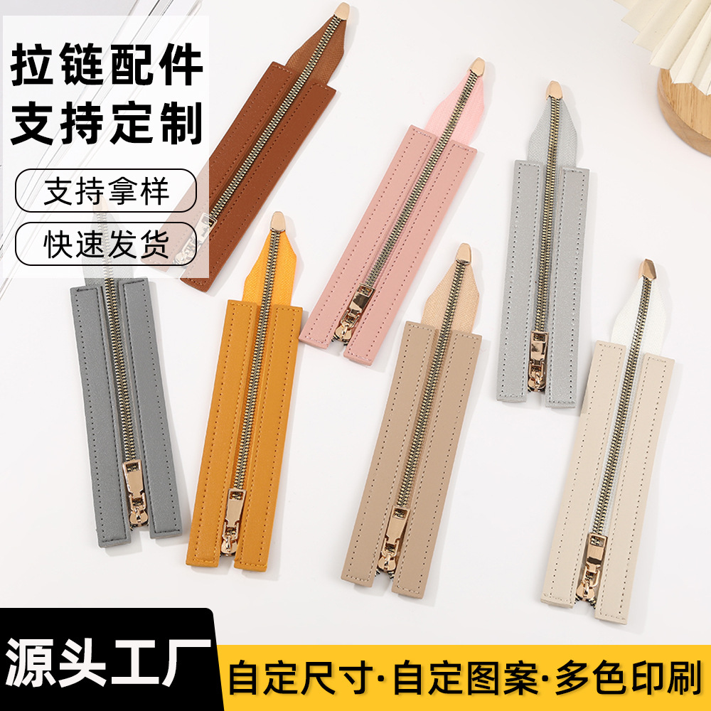 仿真肤感皮革拉链条diy箱包配件金属牙拉链双面皮革女包拉链材料