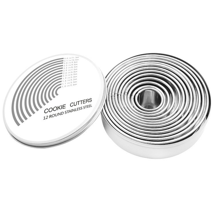 円形クッキーカット12点セットプラスチック収納ケースステンレスドーナツムースリング金型ギョーザ皮型