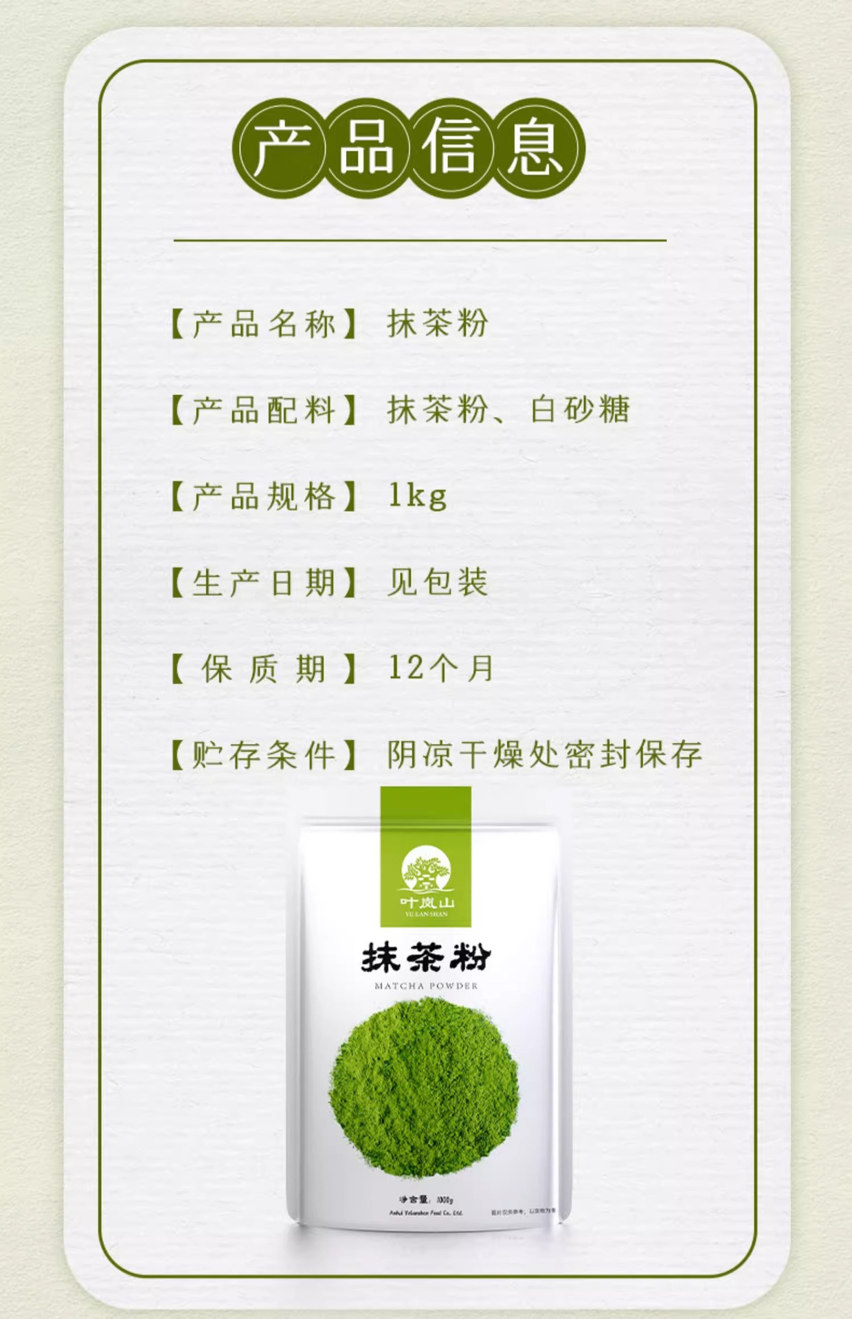 葉岚山抹茶粉1000g抹茶ミルク抹茶ラテ抹茶粉1kgミルクティー店処方原料