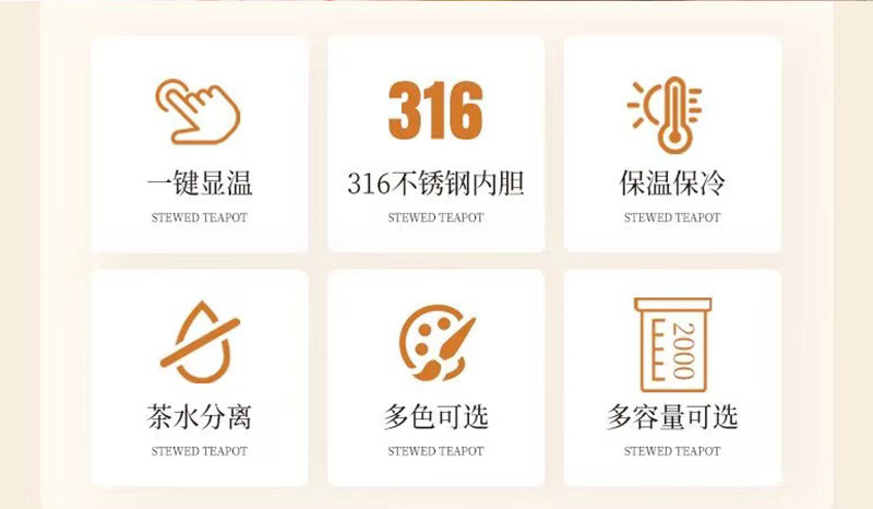 保温ポット316ステンレス蒸し器高颜値茶水分離泡ティーポット知能顕温ギフトカップ卸売り