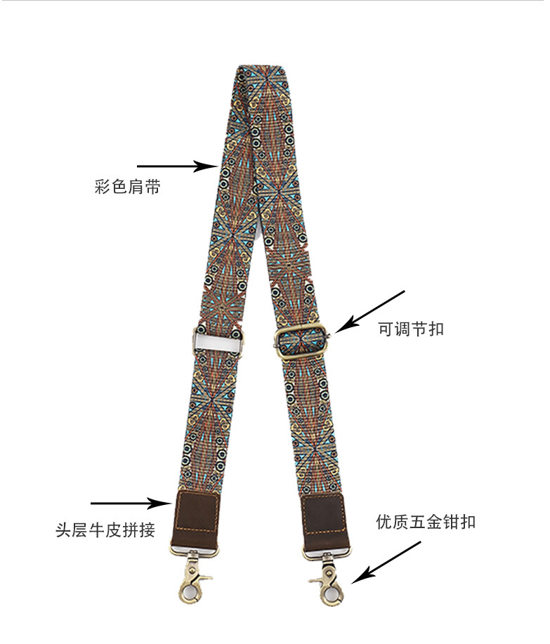 牛革の肩ベルトが狂っています。レトロな肩掛けは長さを調節できます。