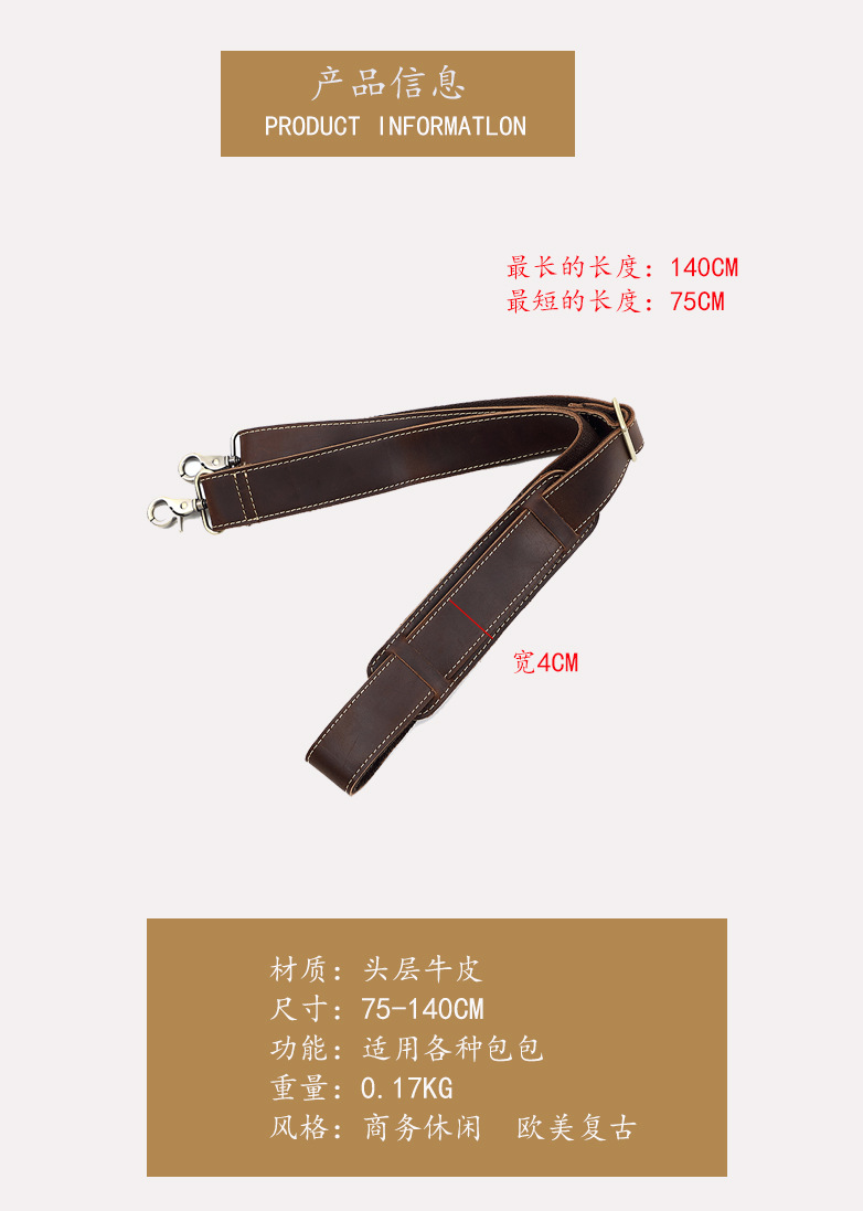 疯马头层牛皮肩带男挎包单肩包替换肩带可调节长短真皮背带包配件