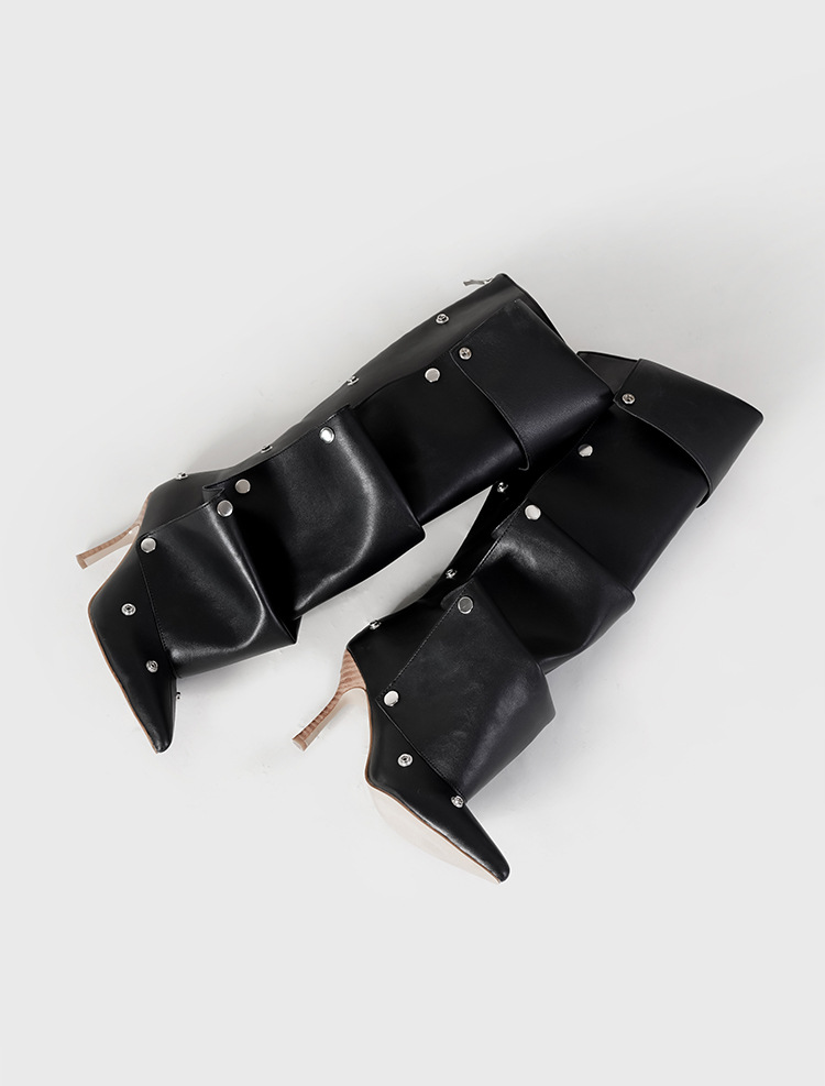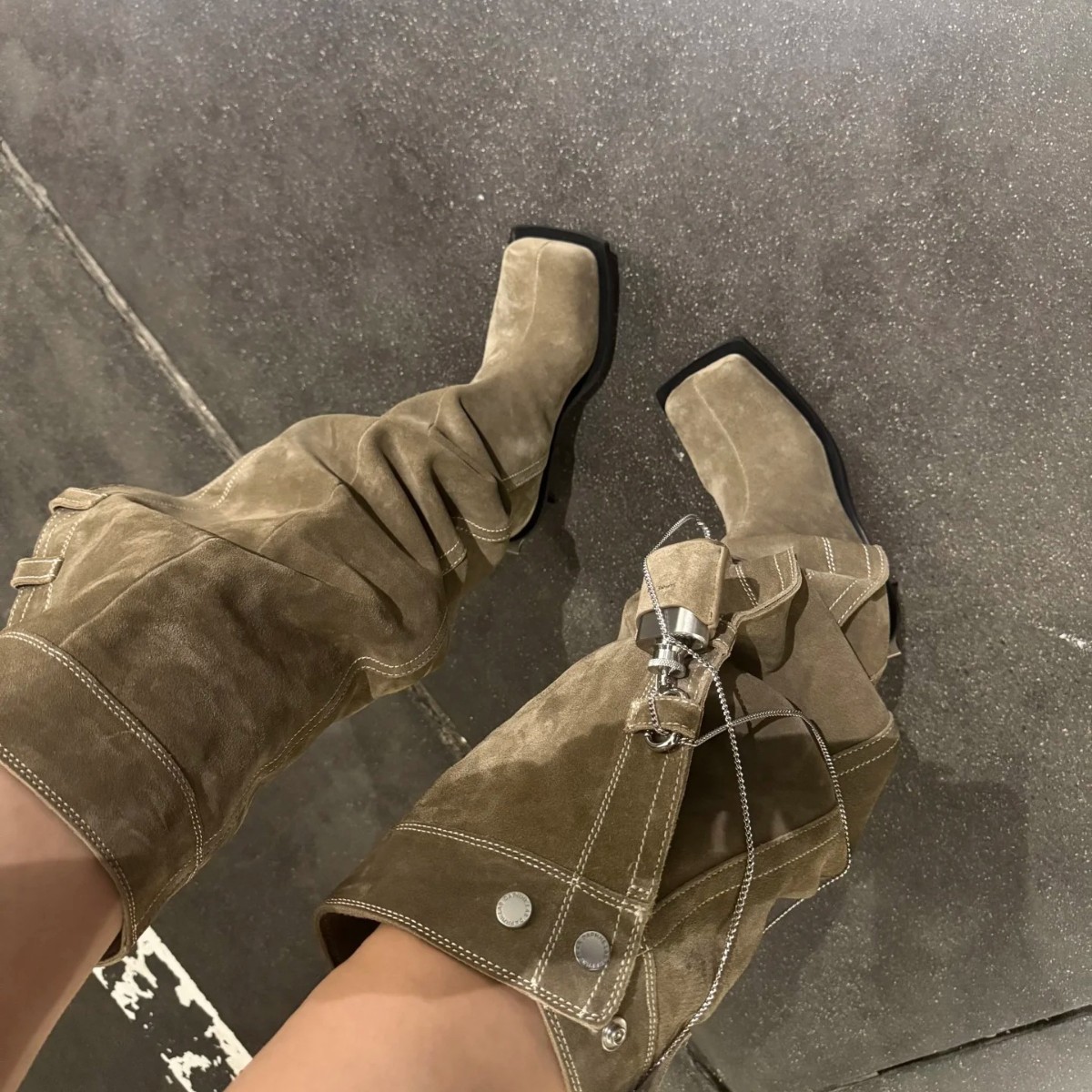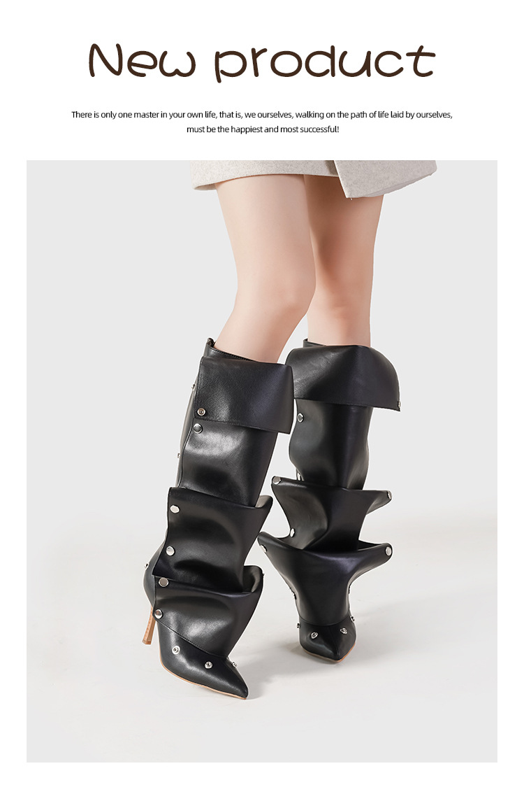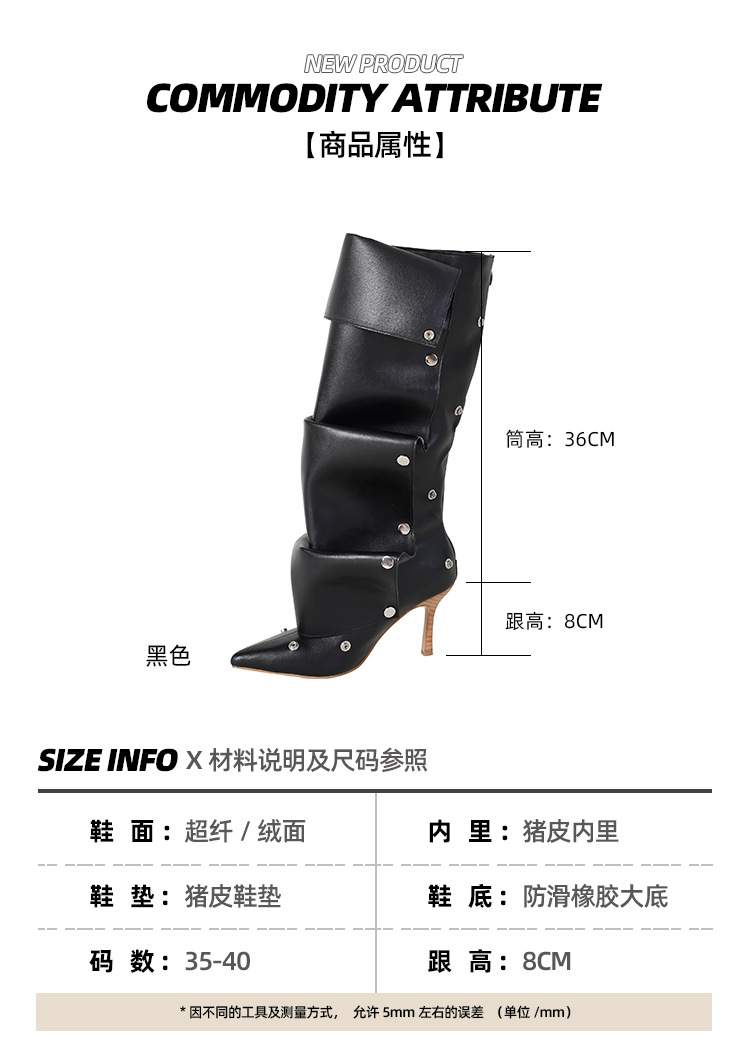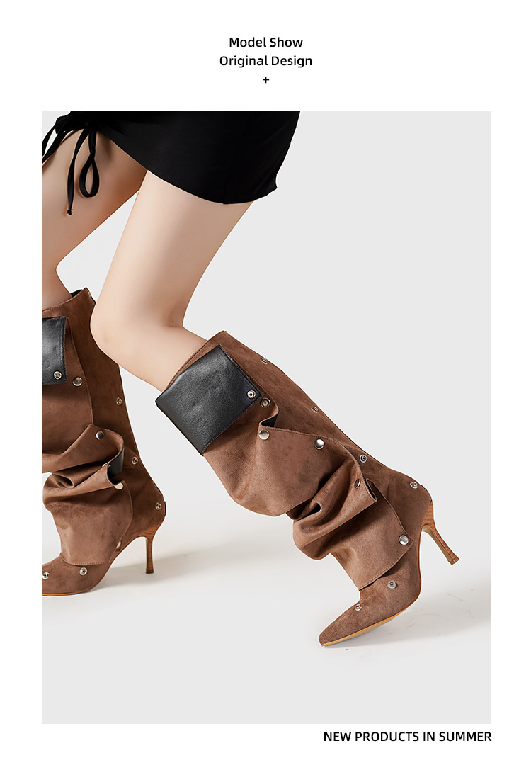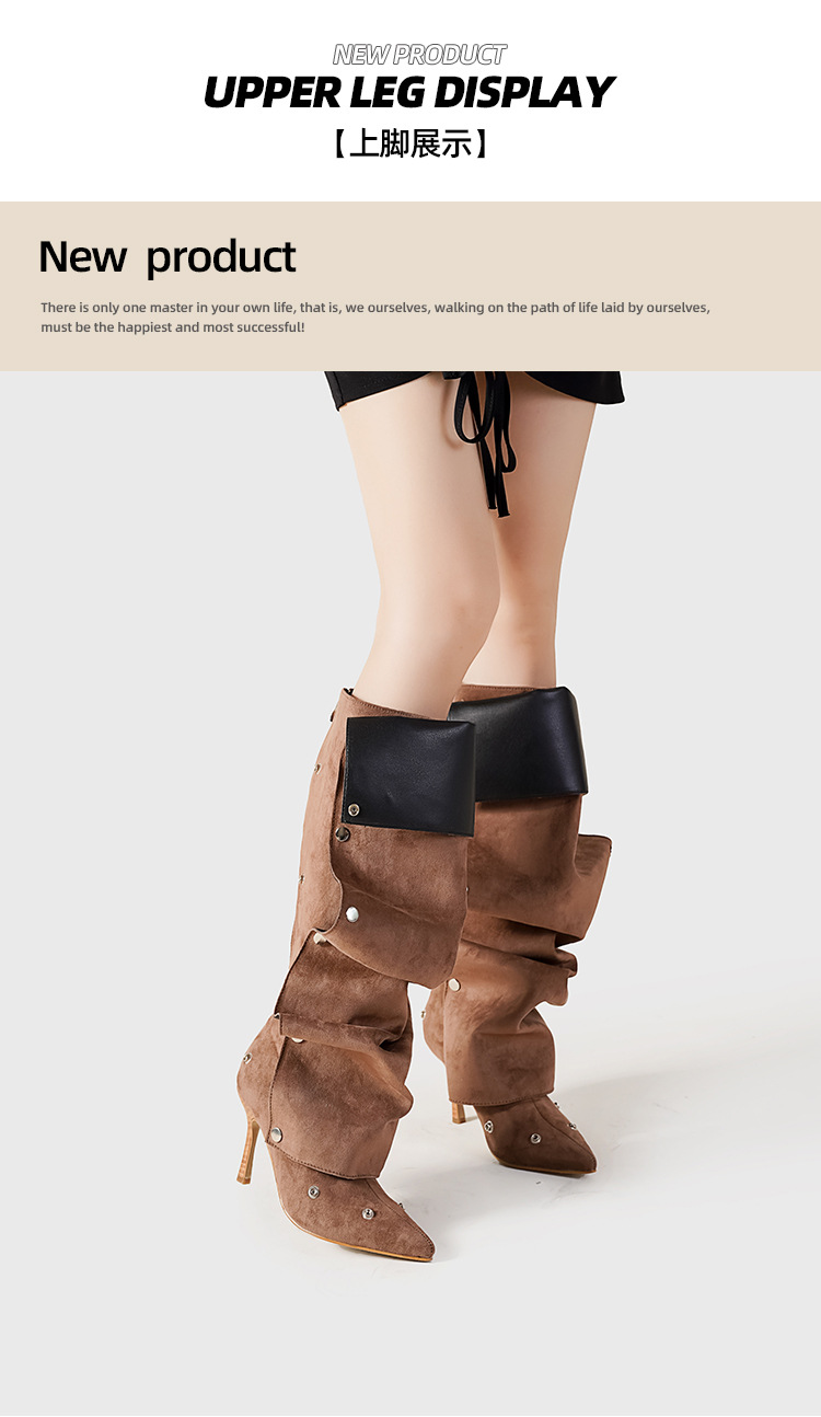 欧美辣妹纽扣两穿尖头堆堆靴子2025新款秋冬长筒靴时装靴细跟靴子