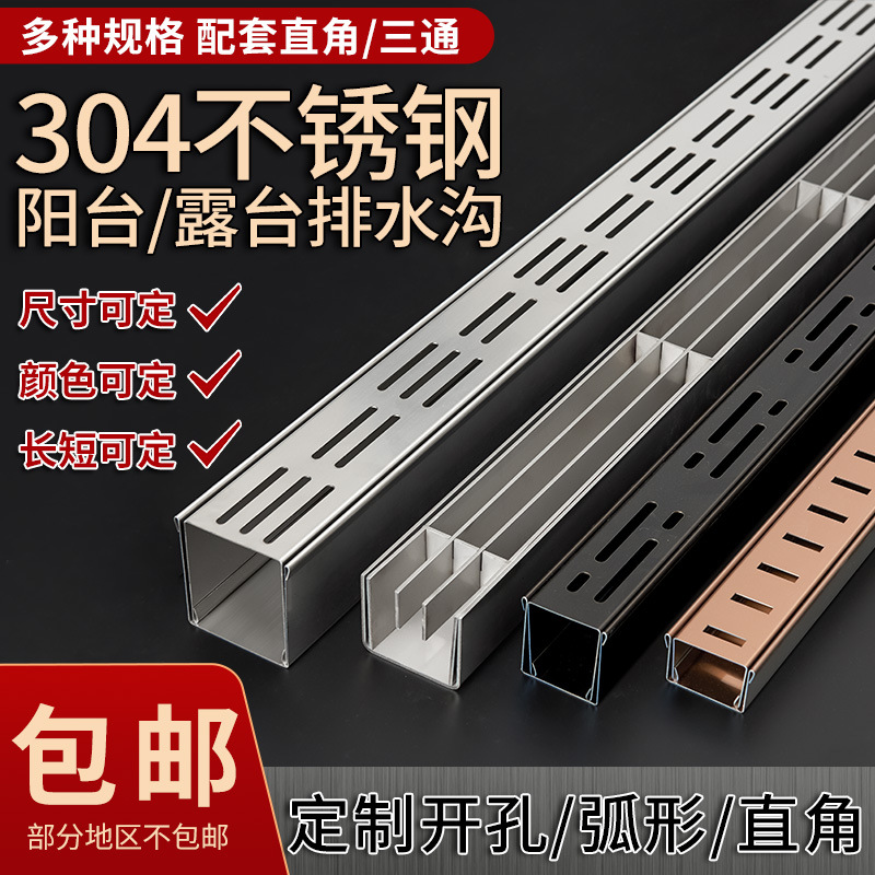 304不锈钢排水槽阳台成品排水沟u型迷你沟露台排水沟u形槽庭院