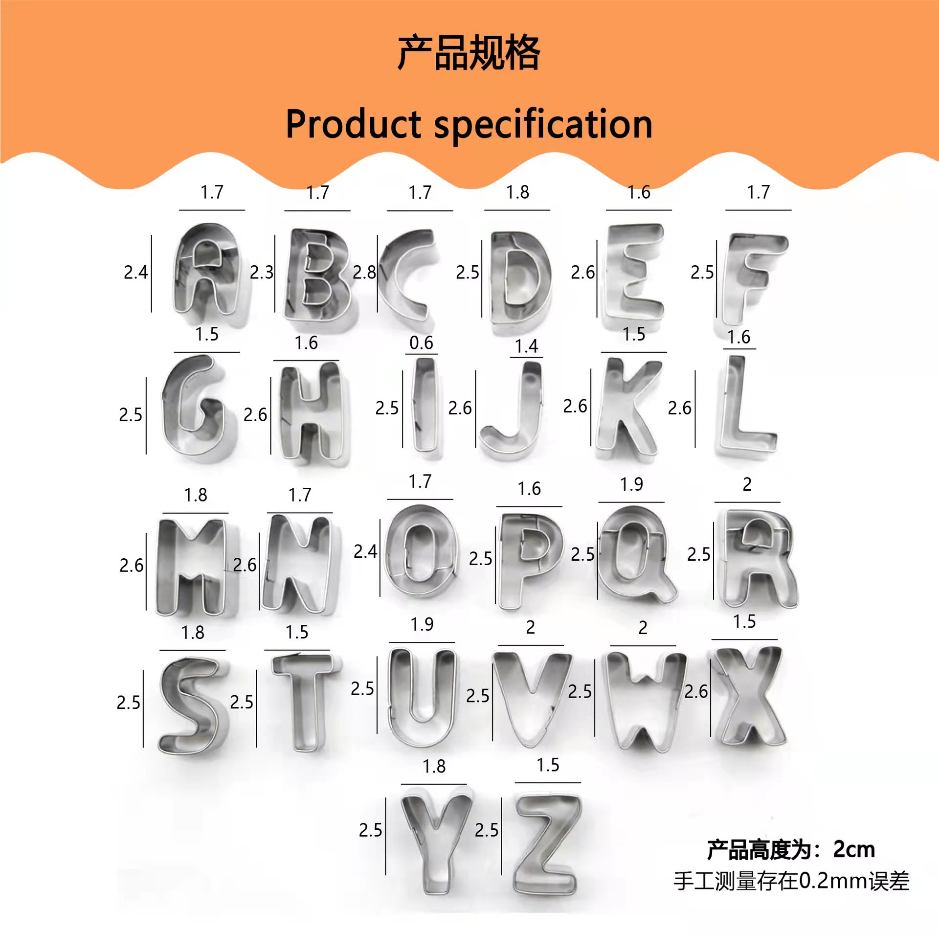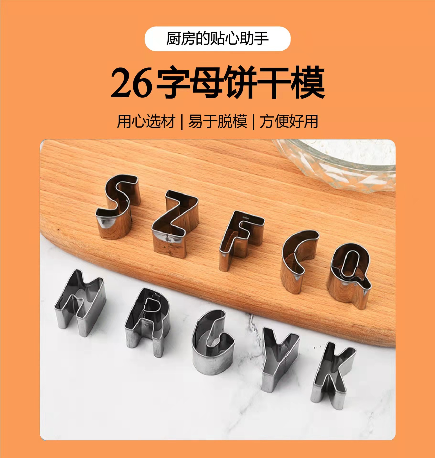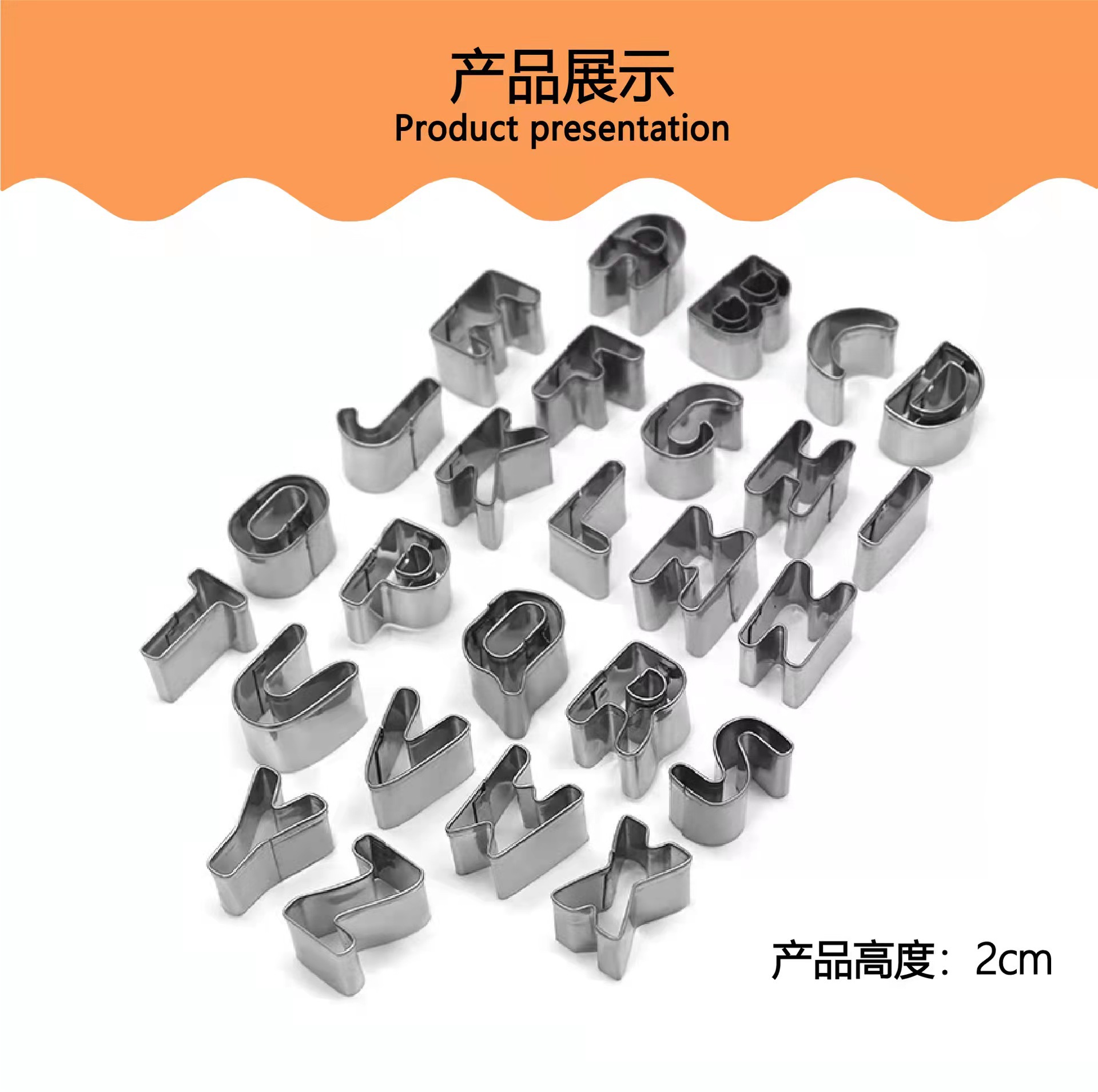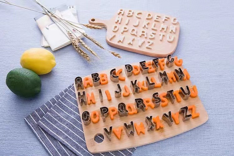 26文字の英語のアルファベットのステンレスのビスケットの鋳型のクッキーモデルのステンレスの野菜はアルファベットのビスケットの鋳型を切ります。