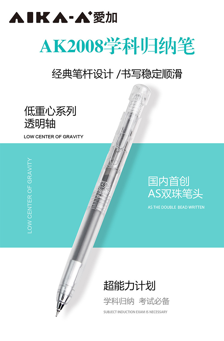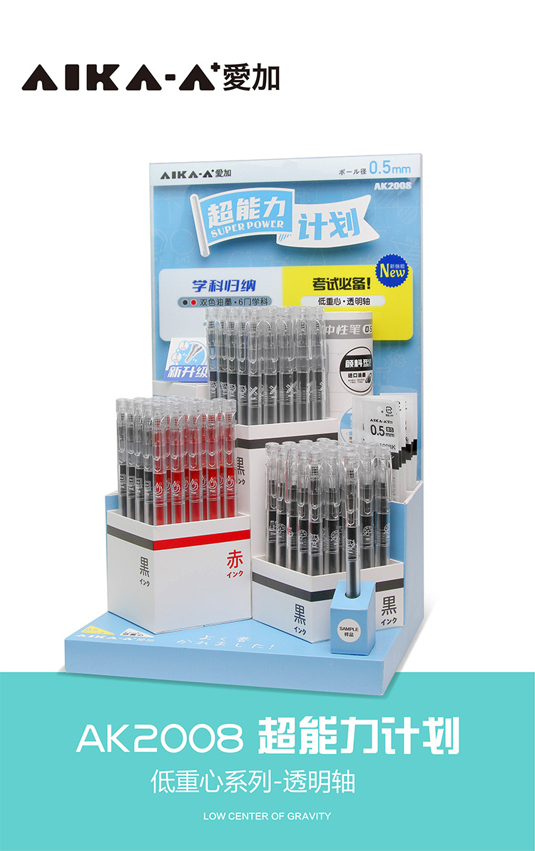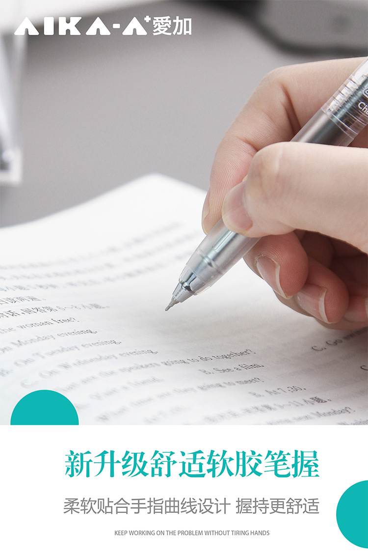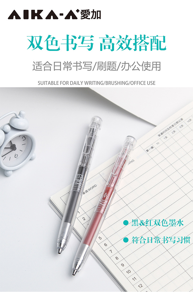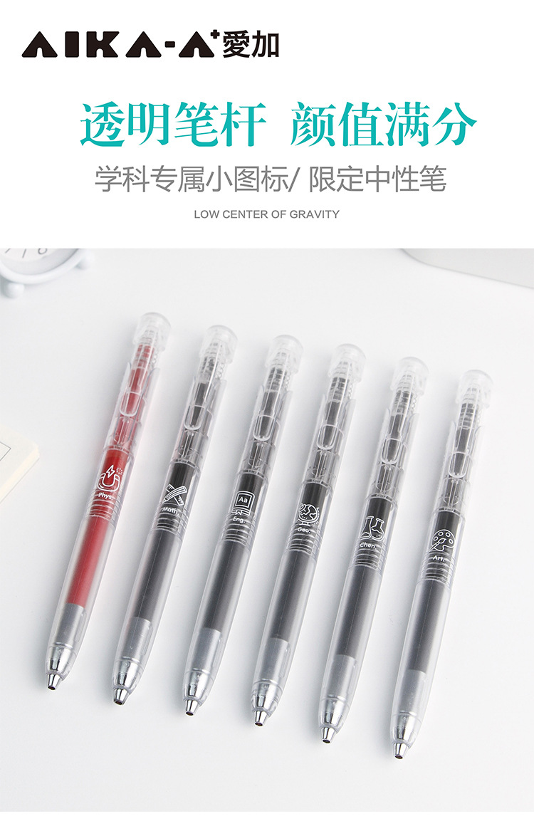 愛加AK2008低重心黒中性筆試験筆学科筆透明棒順滑学生筆絶えない墨