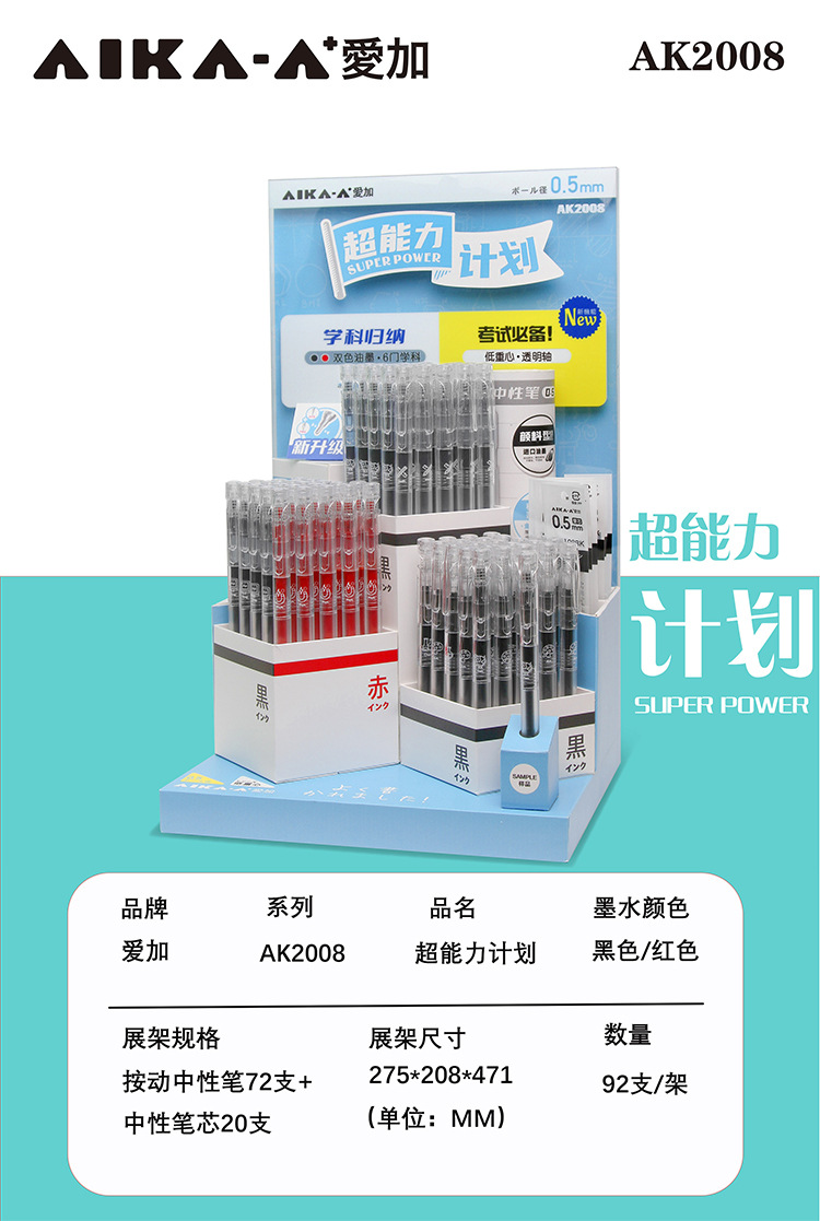 シンプルな中性ペンAK2008低重心押しペン黒0.5mmas双珠大容量ブラシ問題ペン卸売り