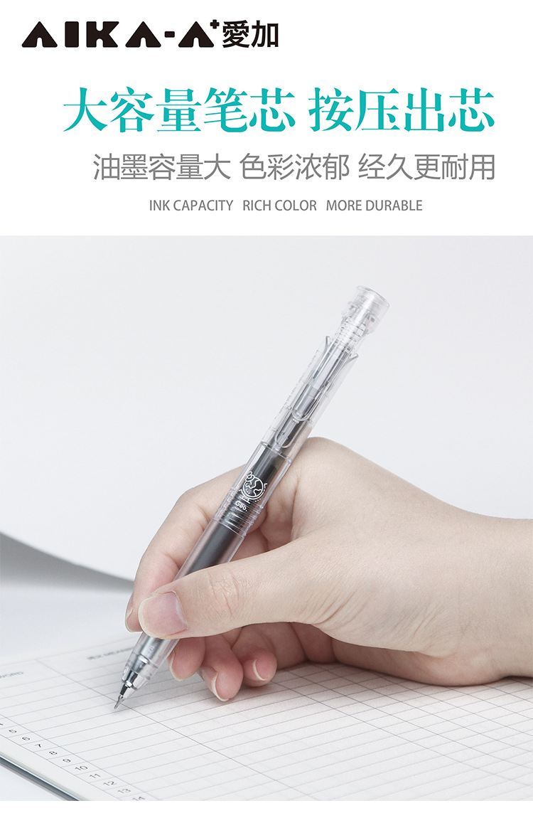 愛加AK2602押し中性ペン0.5mm低重心ASペンヘッド超滑らか大容量ブラシ問題ペン