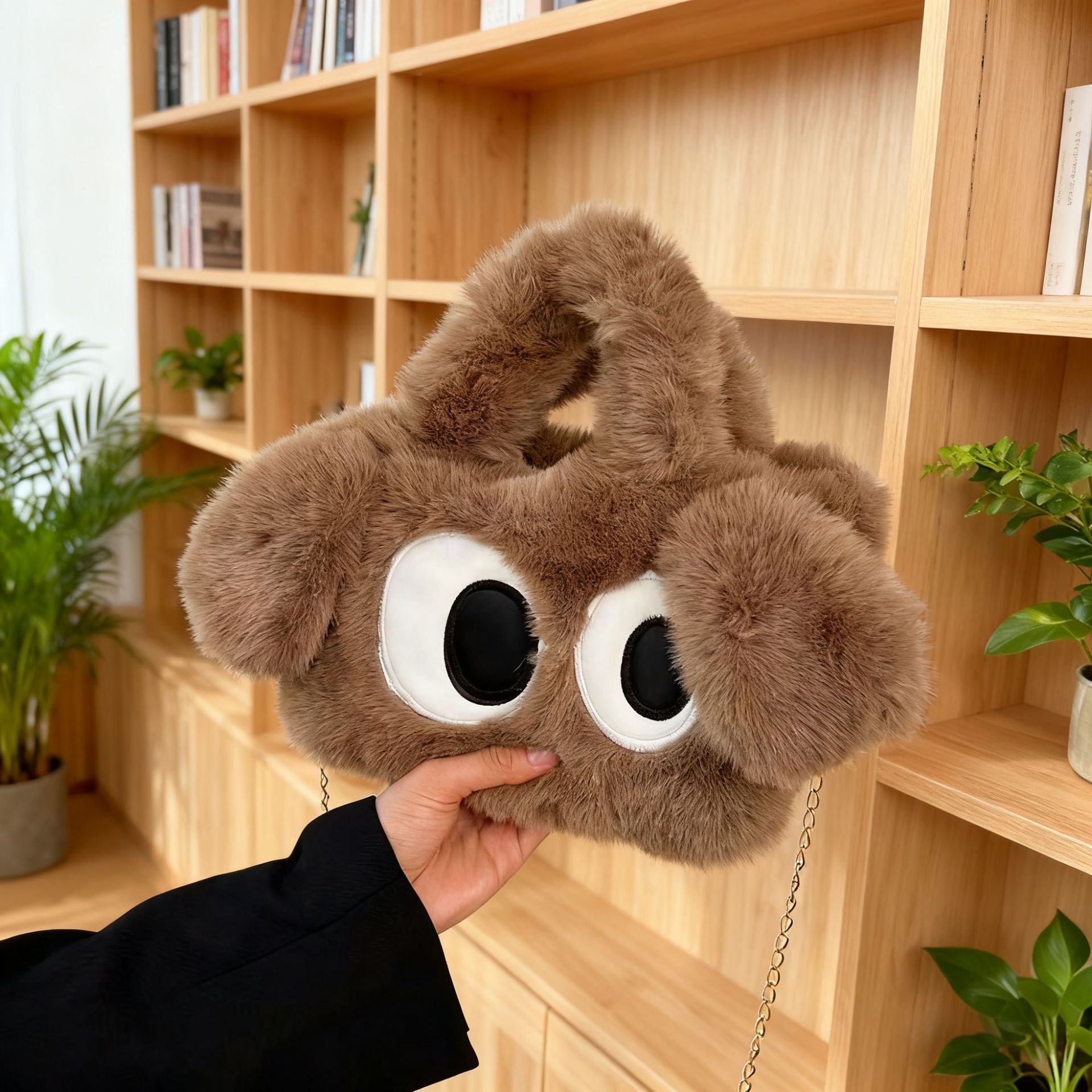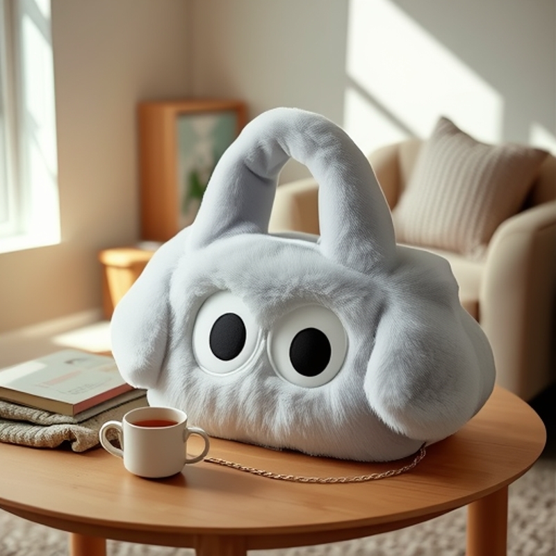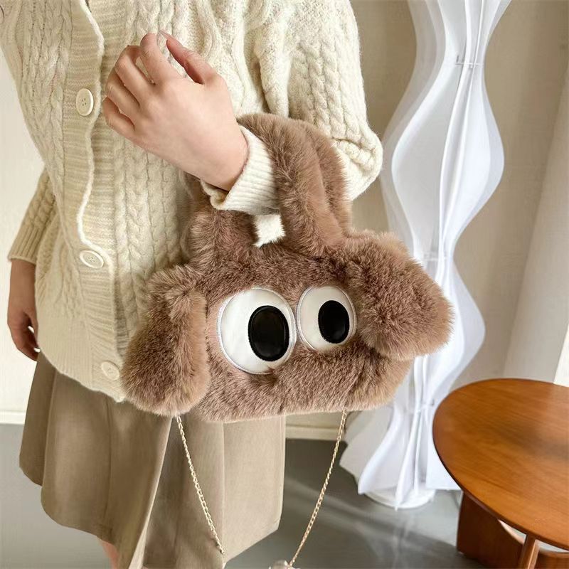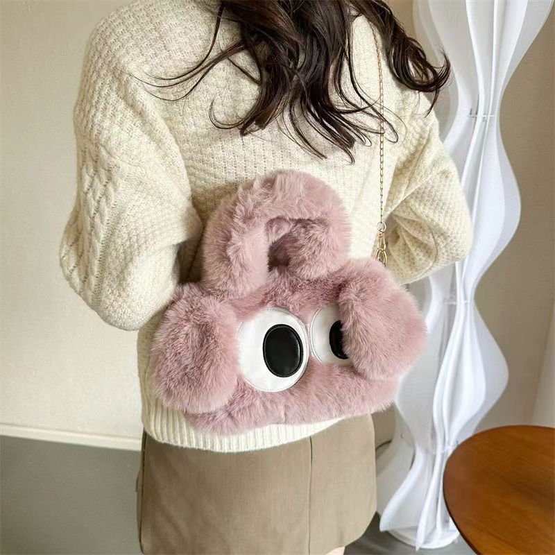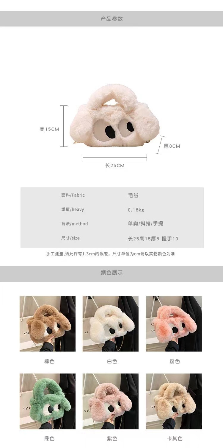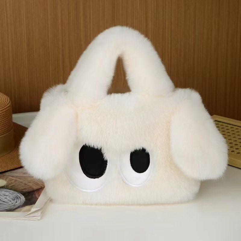 2024年冬向け漫画風ふわふわバッグ、大きな目が可愛いぬいぐるみハンドバッグ、子犬バッグ、ショルダー/斜め掛けバッグ、カジュアルで多用途