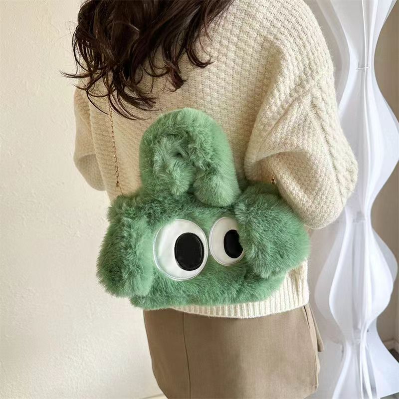 小狗大眼毛绒包秋冬新款毛绒手提包百搭通勤链条斜跨包设计感包包