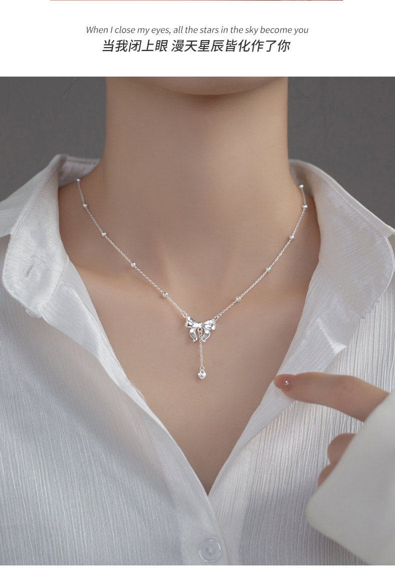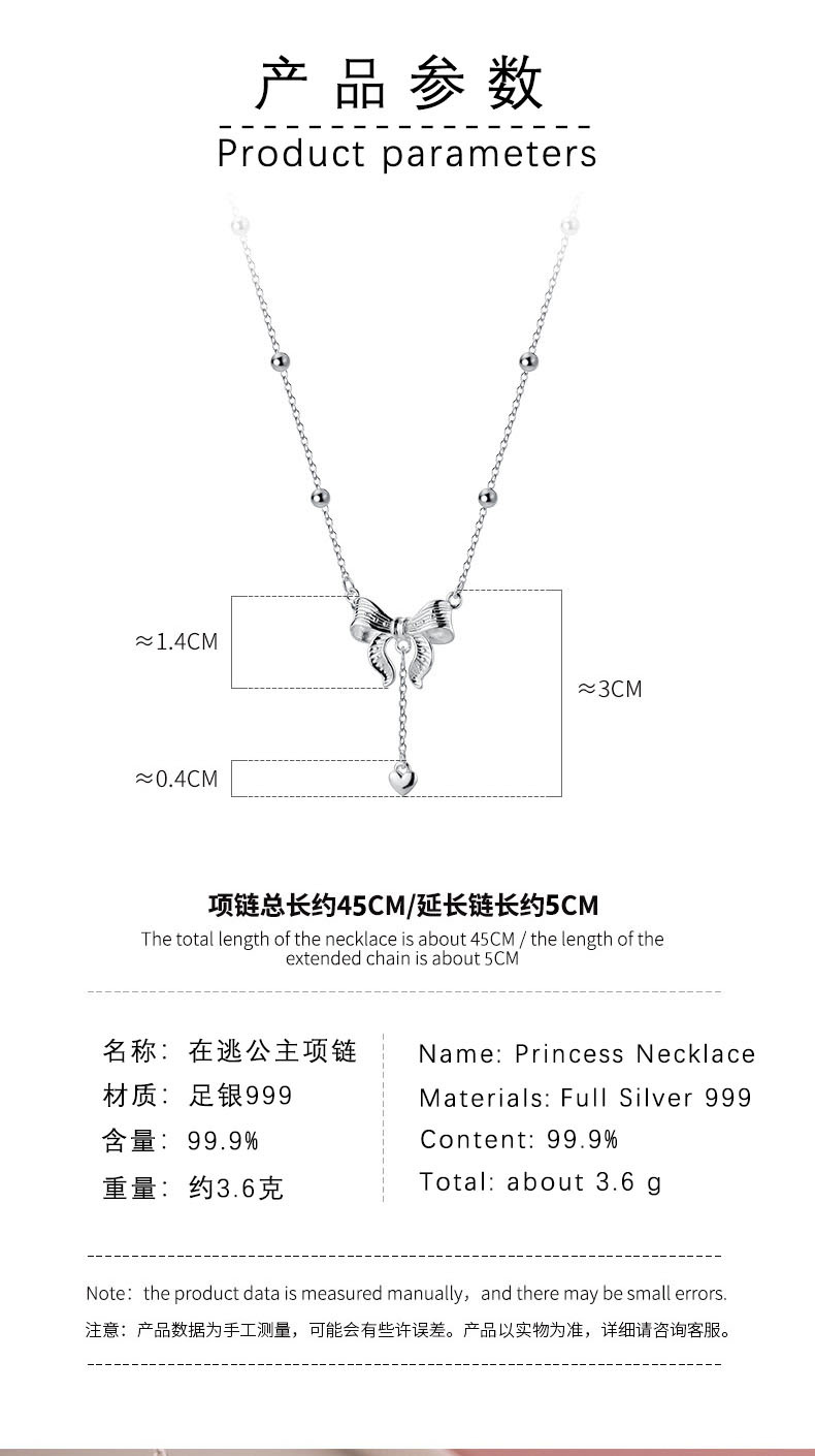 逃げている王女の純銀のネックレスの足銀999は爆発的な蝶結びの鎖の贈り物を生放送して彼女に卸売りします。