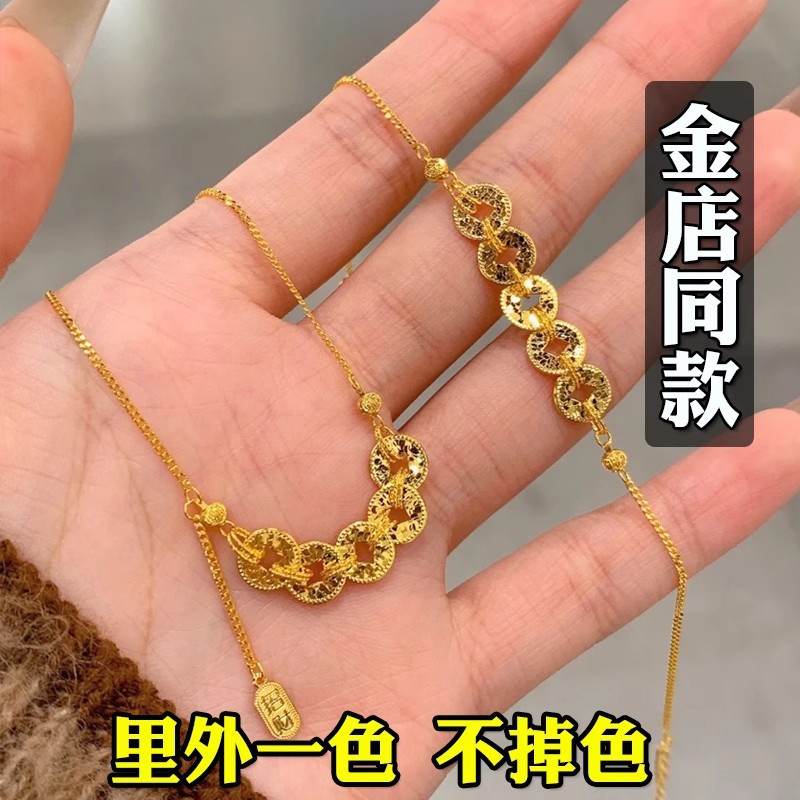 黄金色925银五帝钱碎冰冰项链精致百搭招财进宝小众轻奢锁骨链