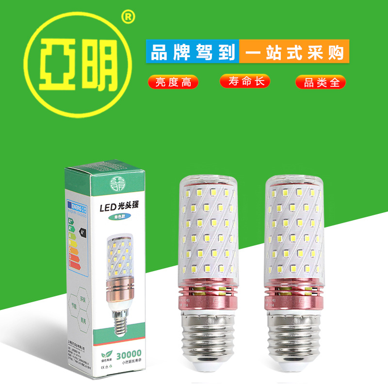 亞明之光led玉米灯泡E14E27螺口光头强节能灯正品超亮吊灯光源