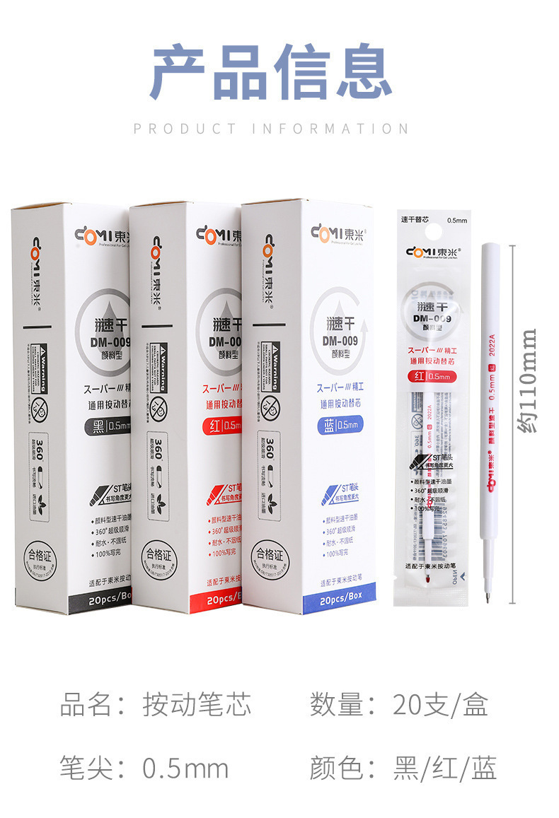 東米DM-009替芯速乾原装芯st切針管押動芯顔料タイプ順滑黒赤青