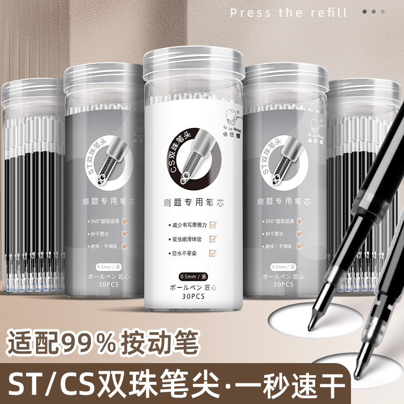 点石中性笔芯合集速干0.5mm针管子弹st头双珠顺滑红色黑色按动芯