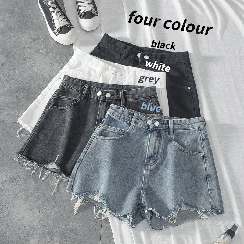 夏の新型の穴が開いたデニムの半ズボンの女性の韓国版のゆったりしている広脚の熱いズボンの薄い色はやせている毛の縁の超短いズボンを現します。