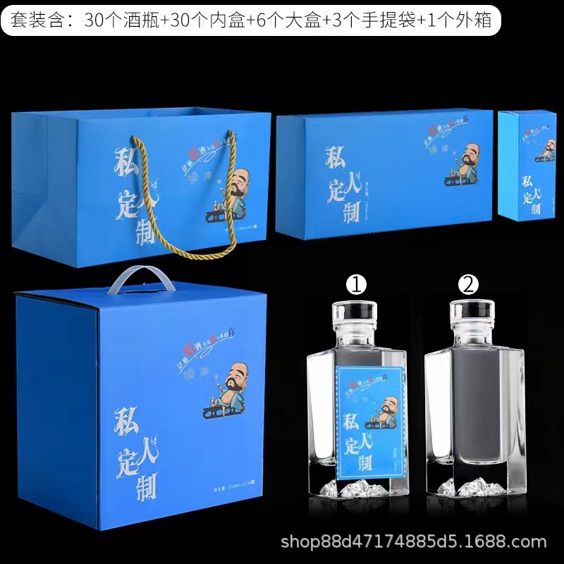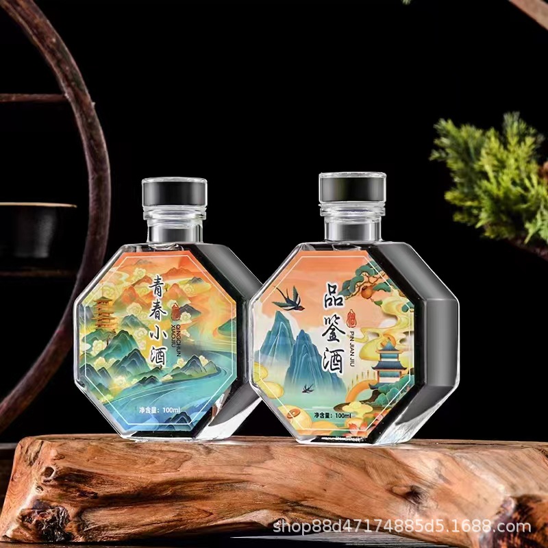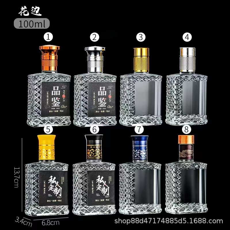 卸売り100mlの小さい酒の瓶の白酒のガラス瓶の二両の白酒の分注の瓶の逸品の礼箱の品鑑の酒の空の瓶