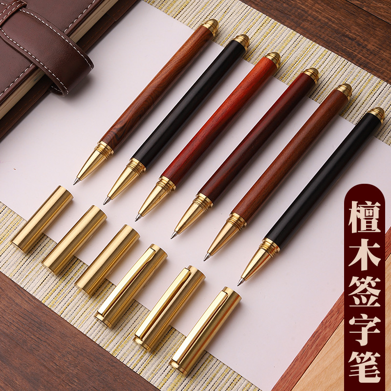 高級木製ペンクリップ付き中性サインペンビジネス宝珠ペンオフィス金属木製ペン復古プレゼント