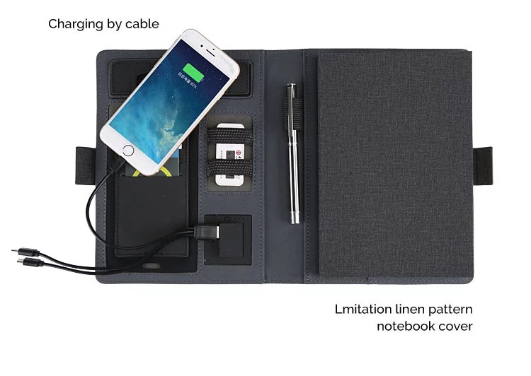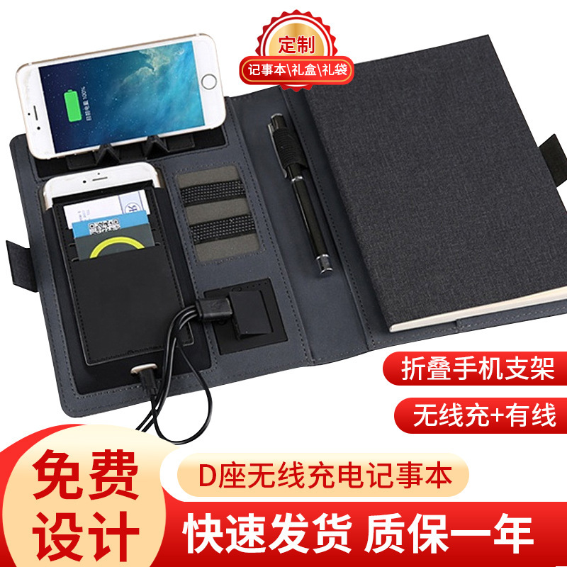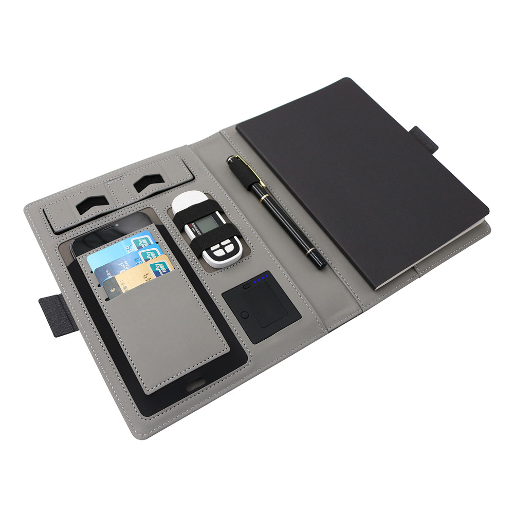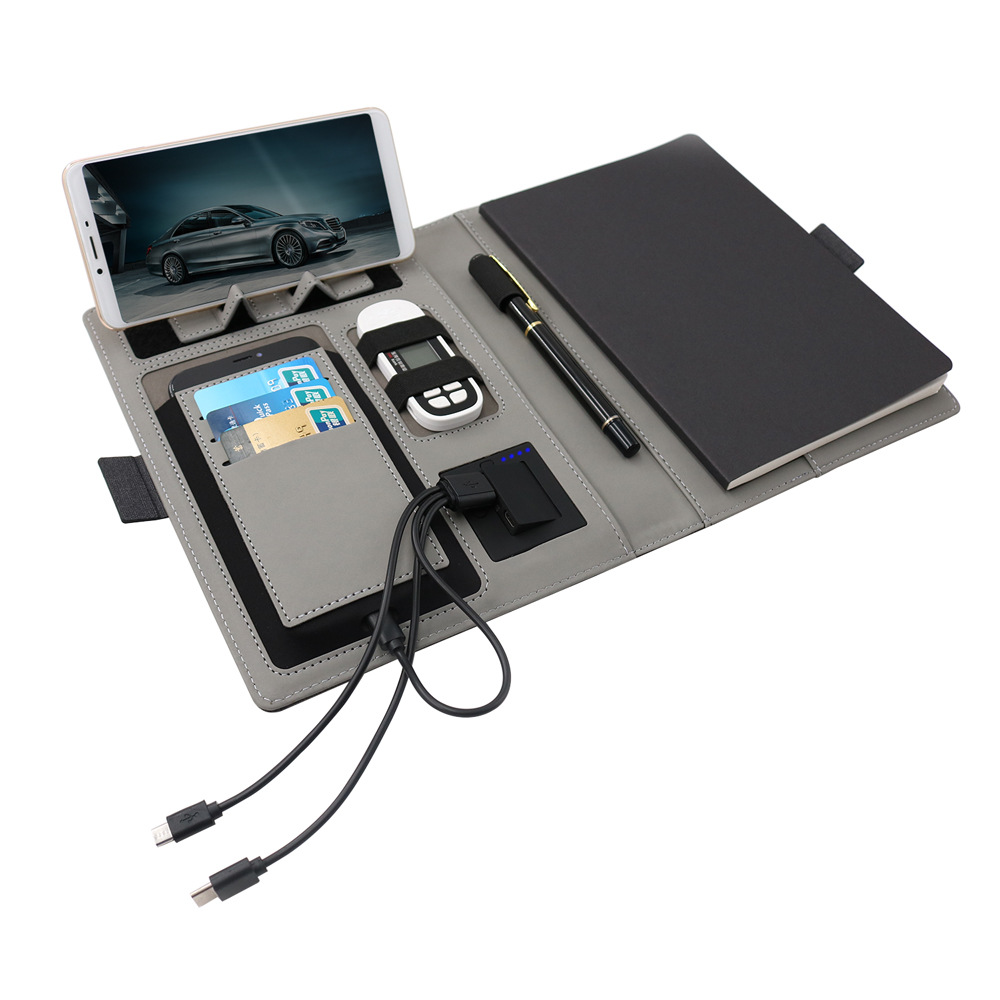 ワイヤレス充電メモ帳 クリエイティブハンドブック パワーバンク ノートブック 卸売 PU布地電源 ロゴ入りマネージャーフォルダー