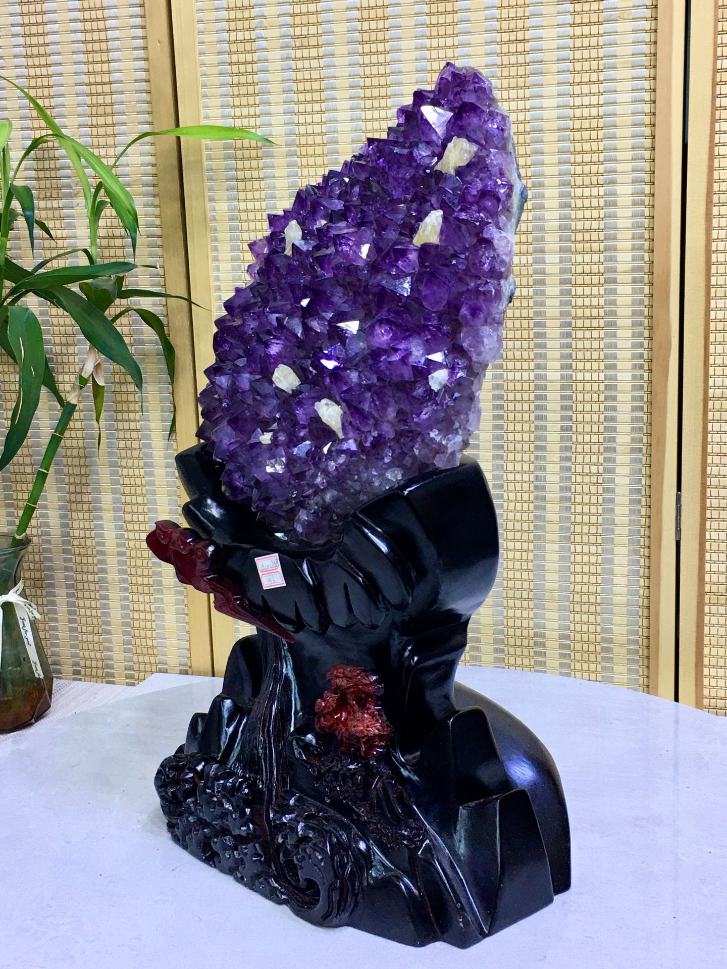 紫晶対洞置物ブラジル紫水晶洞原石聚宝盆銭袋置物開業プレゼント卸売り