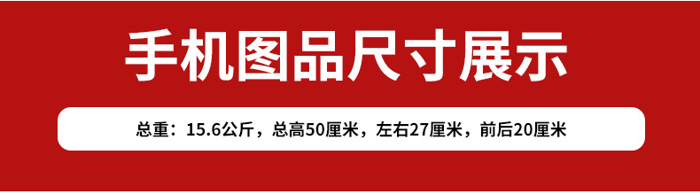 カラー 総重量: 15.6キロ、総高さ50センチ、左右27センチ、前後20センチ