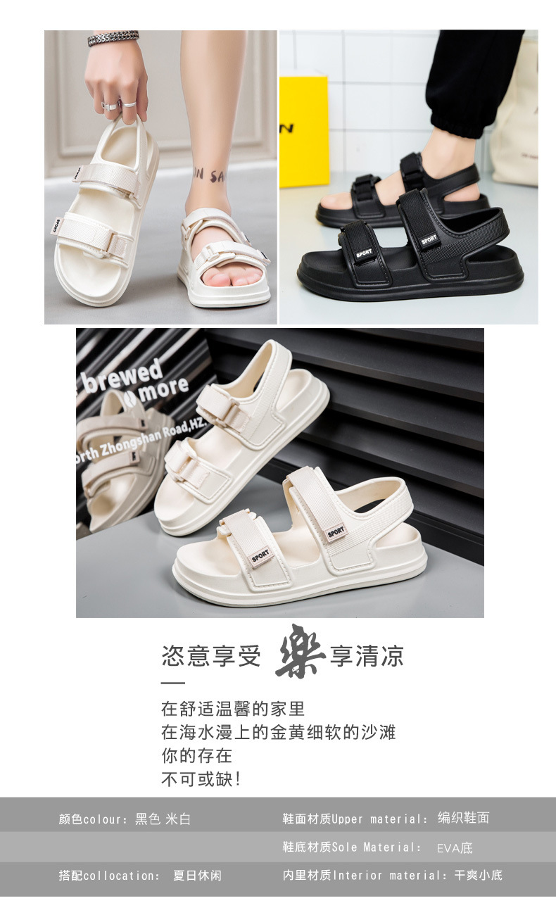 EVA厚底、マジックテープでサイズ調整可能、親子で使えるカジュアルサンダル、柔らかいビーチサンダル、在庫あり、代発送対応