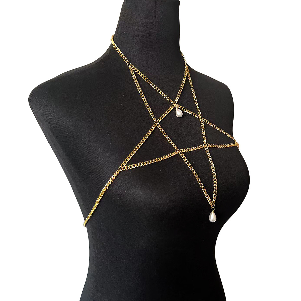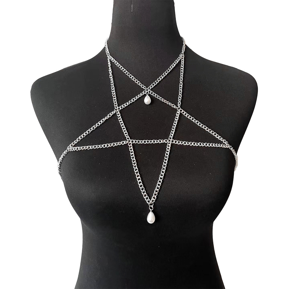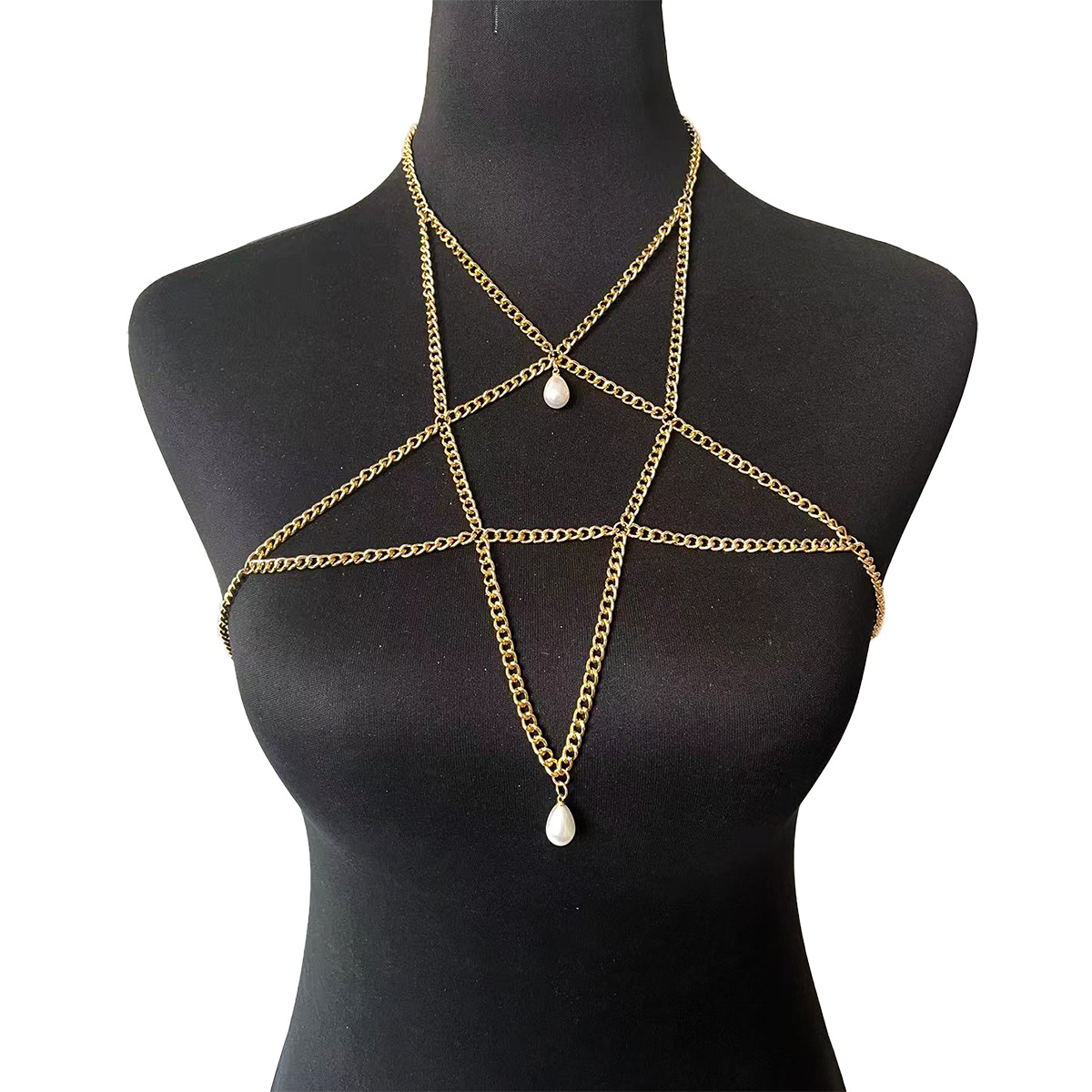 欧米クロスボーダー热い贩売アクセサリーins风五芒星真珠ペンダントビキニ胸锁ファッションセクシーボディチェーン
