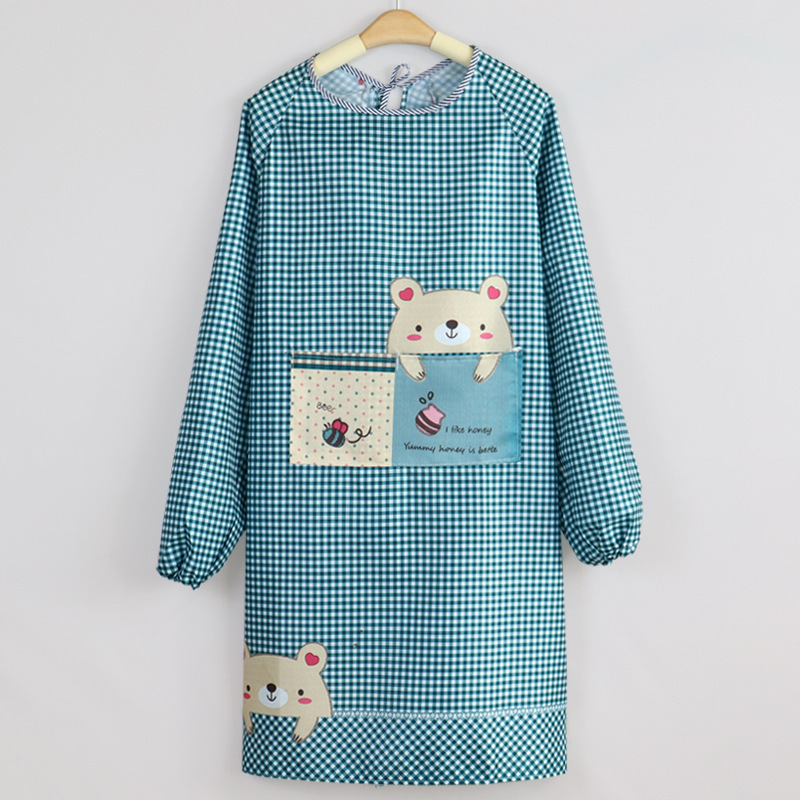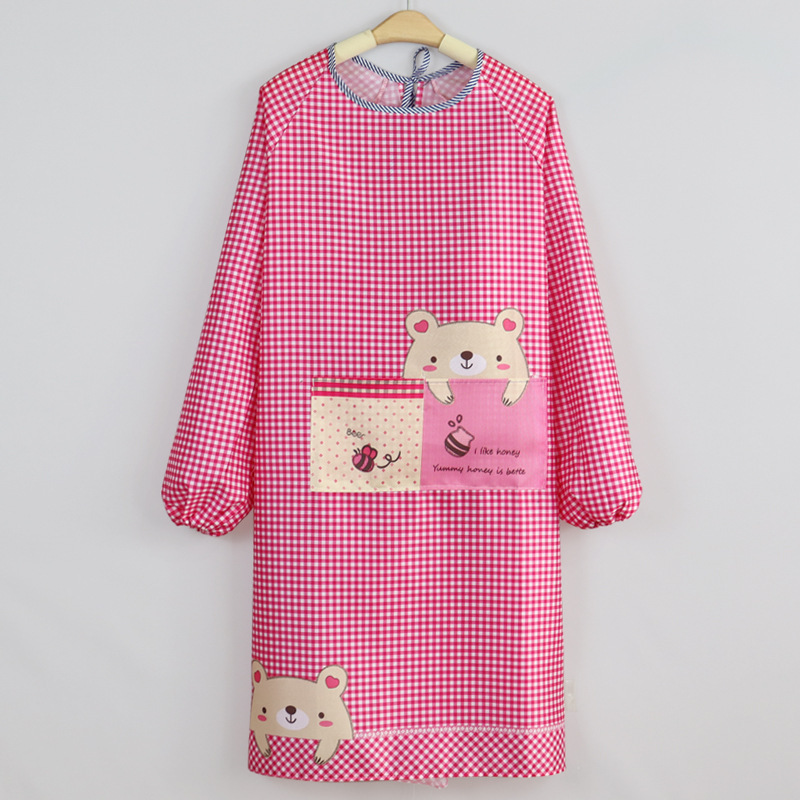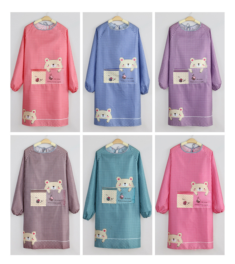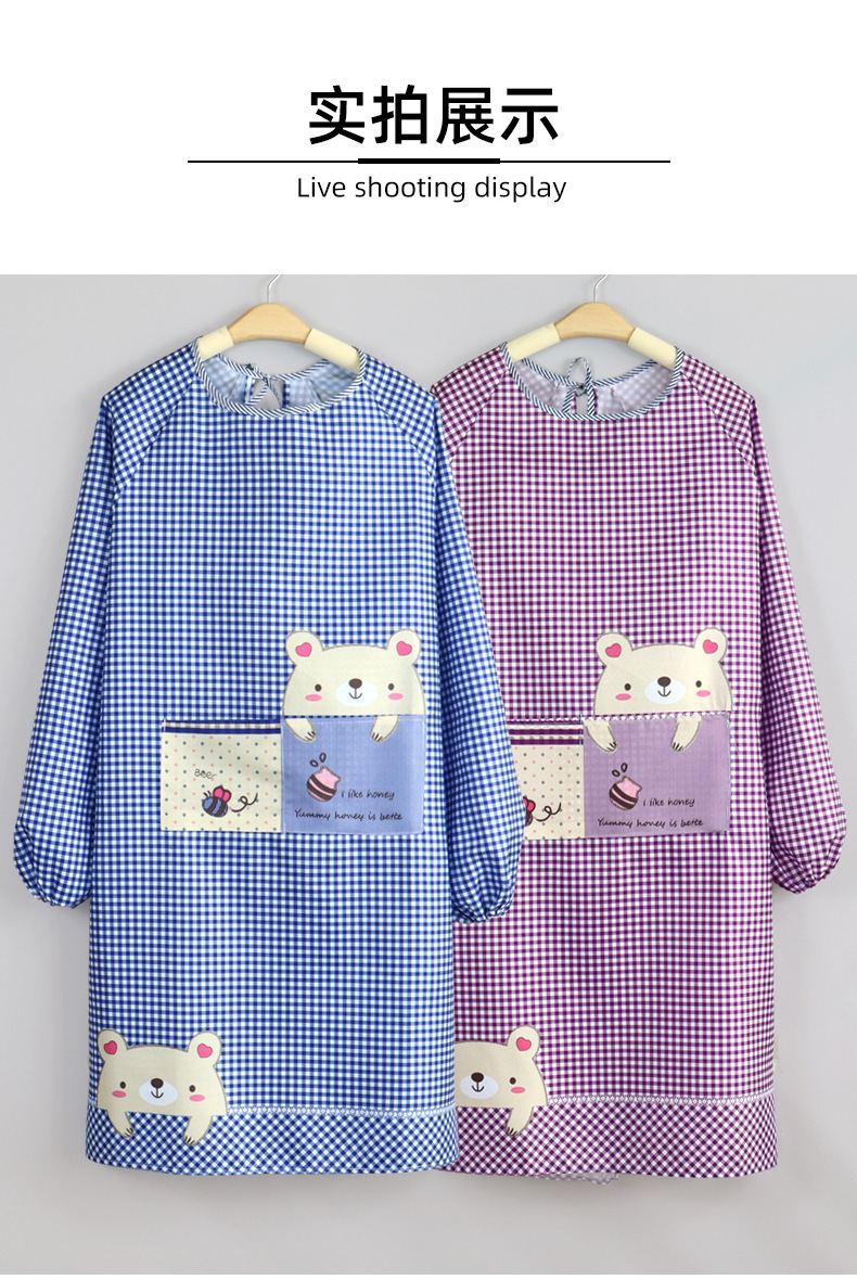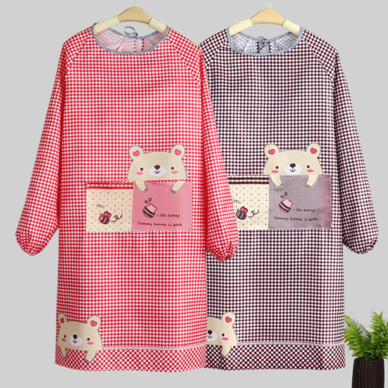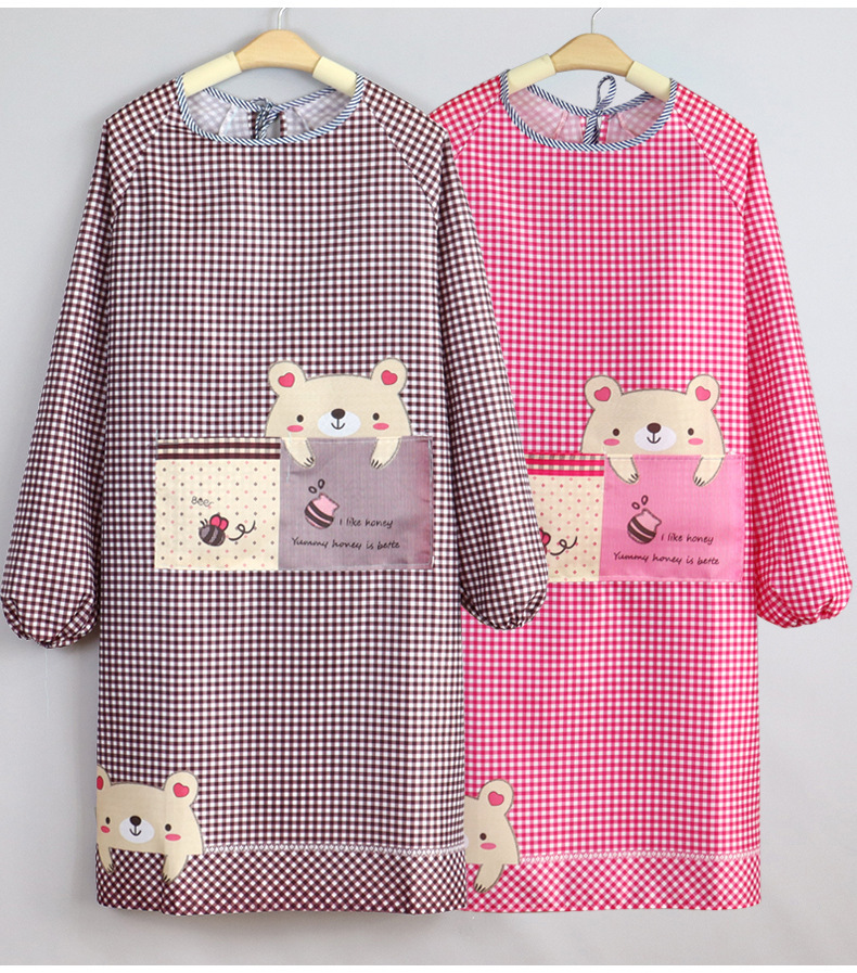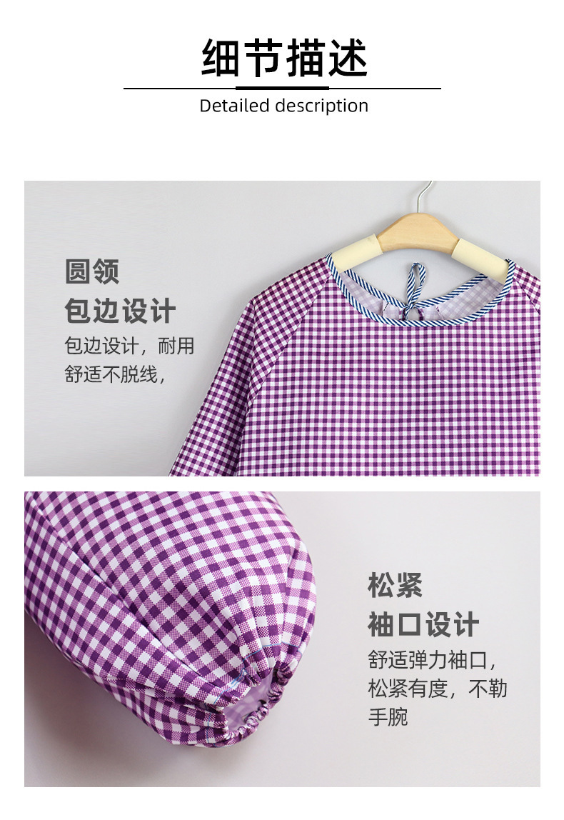 长袖围裙家用做饭格子时尚罩衣透气耐磨耐脏防水防油工作服批发