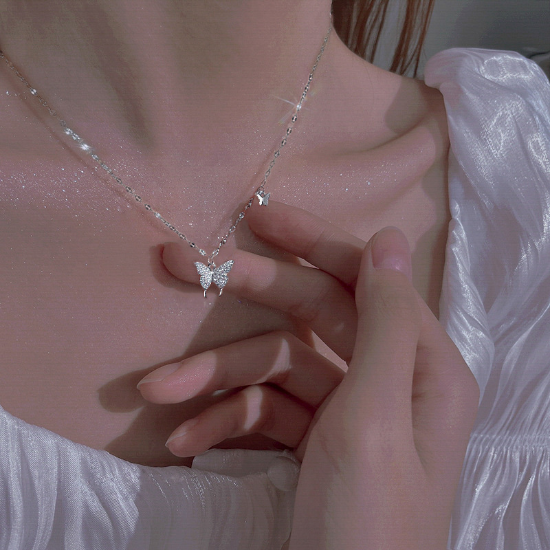 クロスボーダー S999 スターリングシルバー バタフライ ネックレス レディース ライト ラグジュアリー ニッチ デザイン 鎖骨チェーン 親友 バレンタインデー ギフト ジュエリー