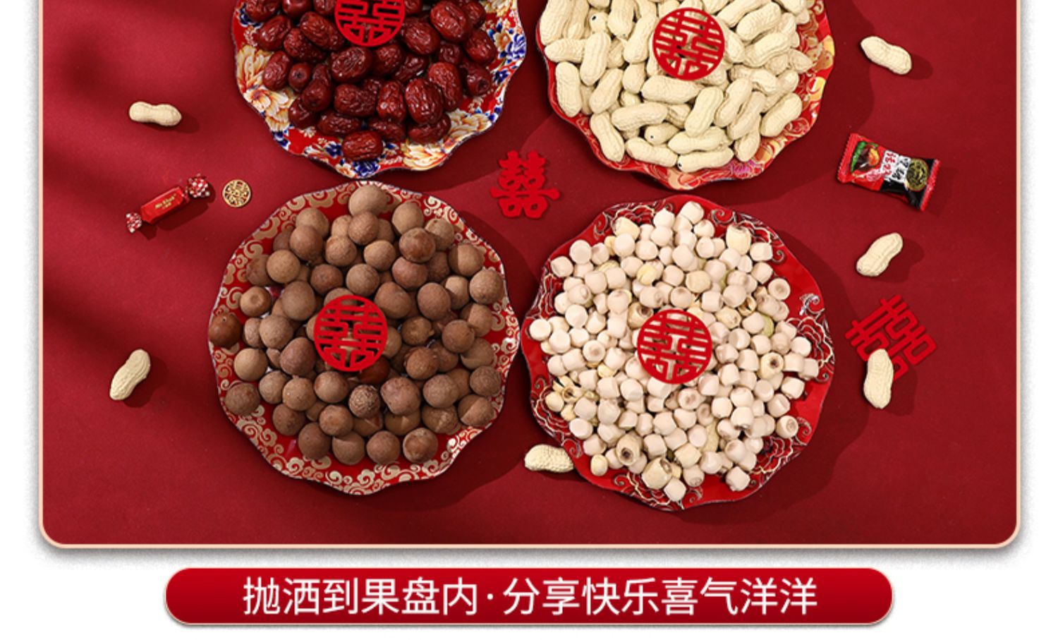 結婚してベッドを撒いてミニ手で喜字の結婚部屋を投げて装飾を投げてアイデアの結婚式の果物の皿を投げます。