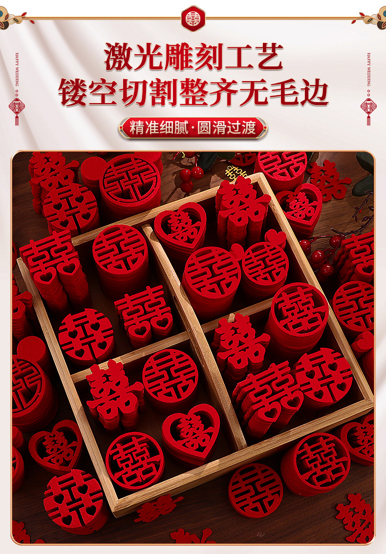結婚式の装飾の赤い不織布の特大号の喜字の結婚の部屋の配置のドアは窓の花のシールの喜字のフェルトを貼ります。