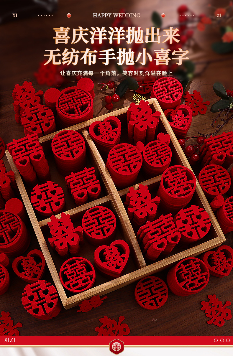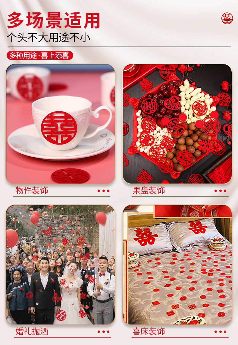 結婚用品の小さい喜字の結婚の部屋は装飾の手を飾って喜子のミニの結婚式の果物の皿を投げて結婚の階段の字を用意して貼ります。