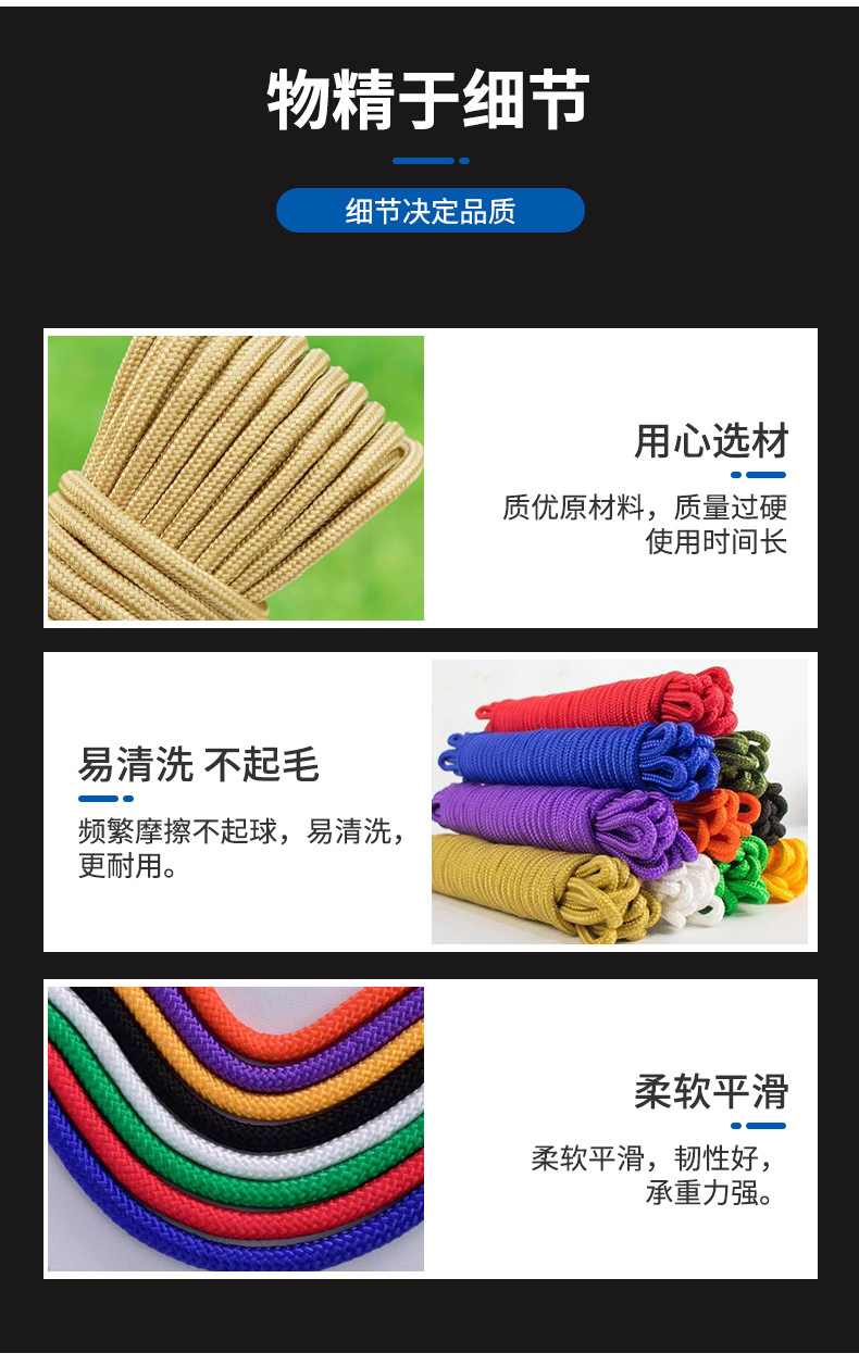 メーカー卸売りナイロンロープ吊り苗ロープ耐摩耗性の新しい材料ポリエチレンロープトラックロープハウス圧膜ロープ