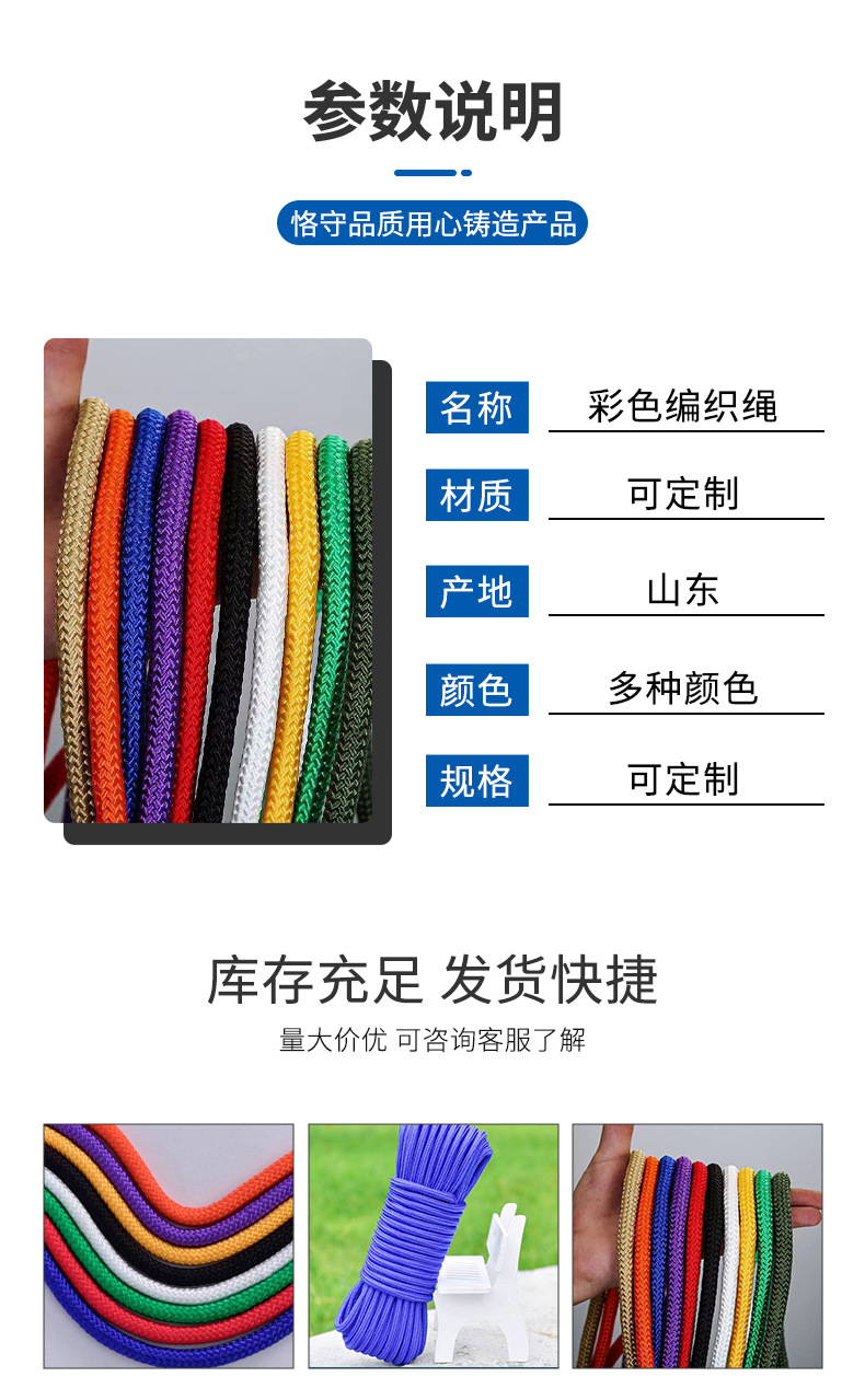 カラフルなナイロン編組ロープ、物干しロープ、コア入りロープ、テントロープ、救助ロープ、バインディングロープ、DIY装飾ロープ