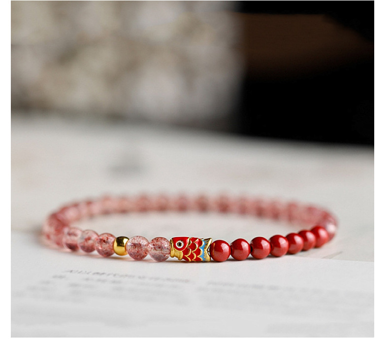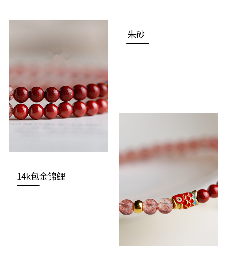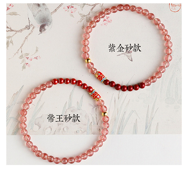 天然いちご結晶4mmの細いブレスレットの女性の原鉱赤朱砂錦鯉民族風手串アクセサリー百合金