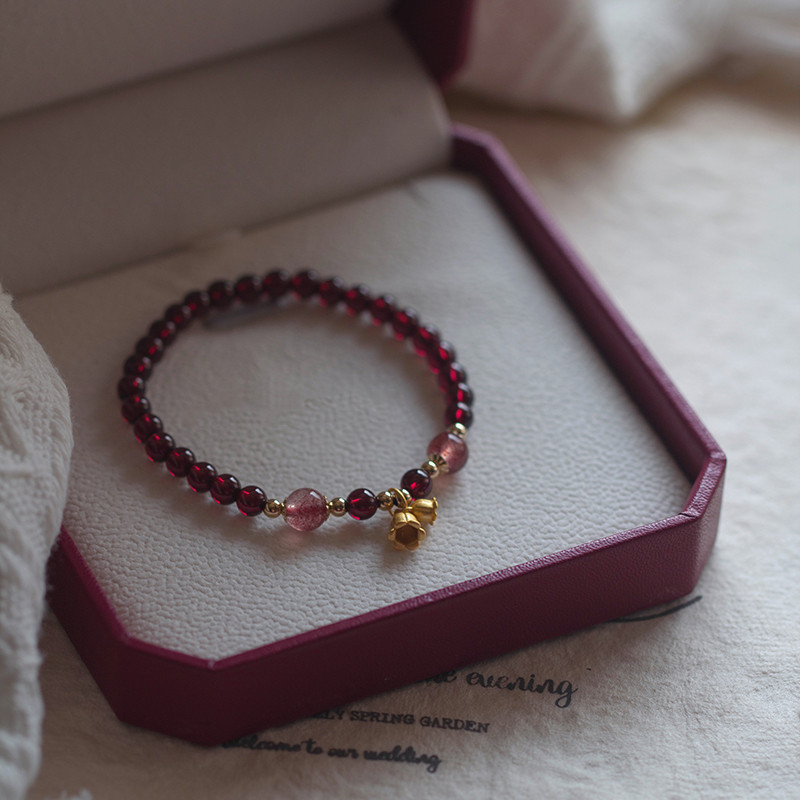 天然ワインレッドガーネット4.8mmボールといちご結晶水晶ブレスレットの女性アクセサリーファッション新中国式
