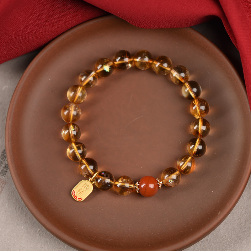 ブラジル黄水晶ブレスレット8mmシングルサークルdiy女性シンプルなデザイン仏珠南紅アクセサリー手串大気アクセサリー