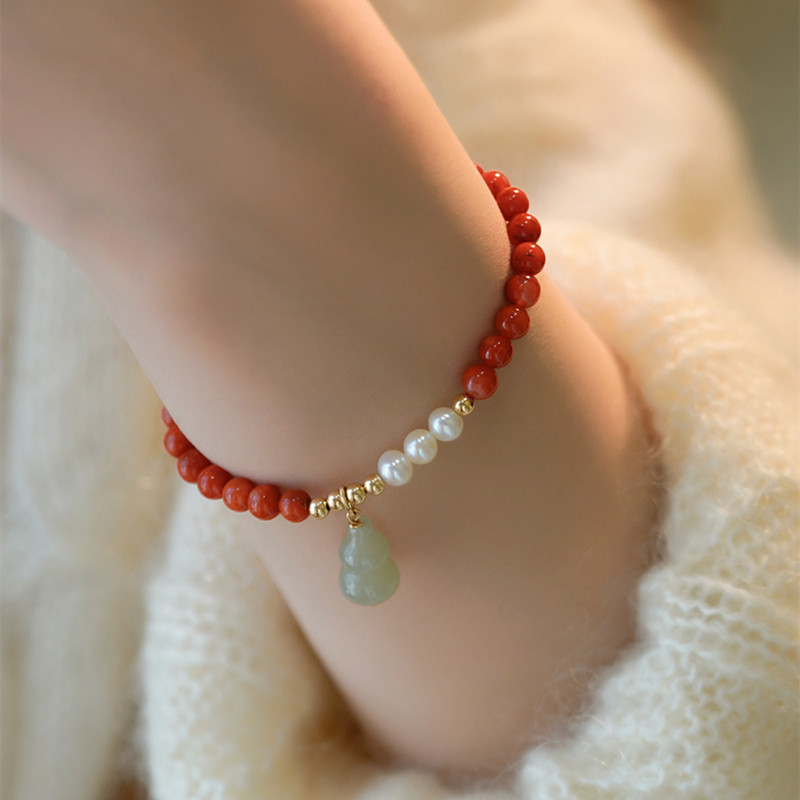 南紅瑪瑙シングルサークル5mmブレスレットdiy女性モデルと和田玉瓢箪淡水真珠アクセサリーシンプル