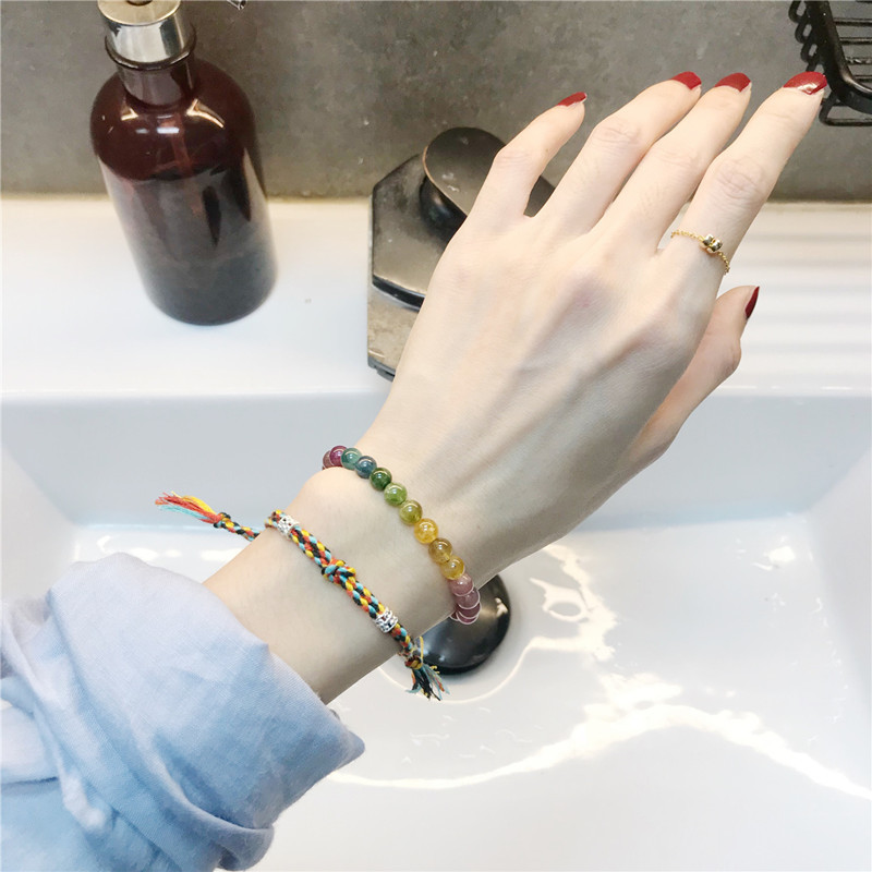 天然碧璽3.5mm前後のグラデーション色の手串極細彩宝ブレスレット水晶鈴蘭ペンダント小清新